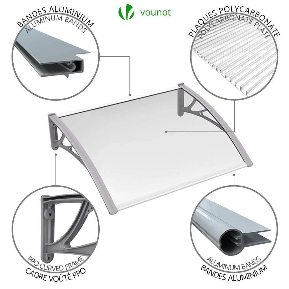 POURQUOI CHOISIR NOTRE PRODUIT ? Notre auvent de porte est une idée parfaite contre tous les intempéries. Cela donne non seulement à la maison une décoration élégante, mais offre également une protection contre le soleil, la pluie et la neige.