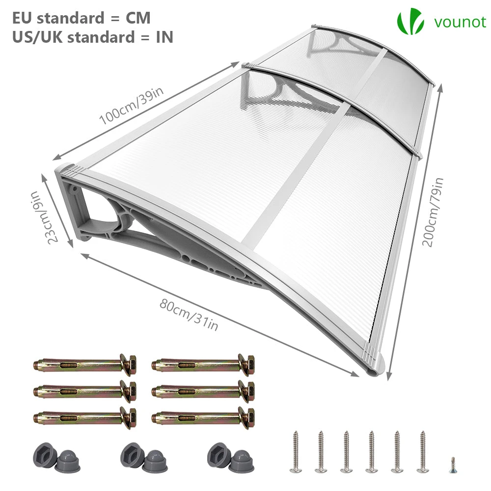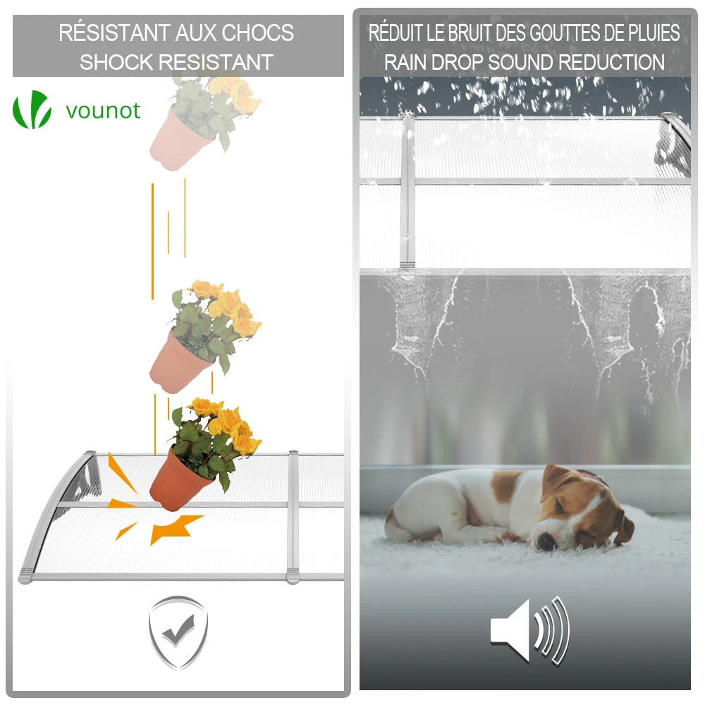 POURQUOI CHOISIR NOTRE PRODUIT ? Notre auvent de porte est une idée parfaite contre tous les intempéries. Cela donne non seulement à la maison une décoration élégante, mais offre également une protection contre le soleil, la pluie et la neige.