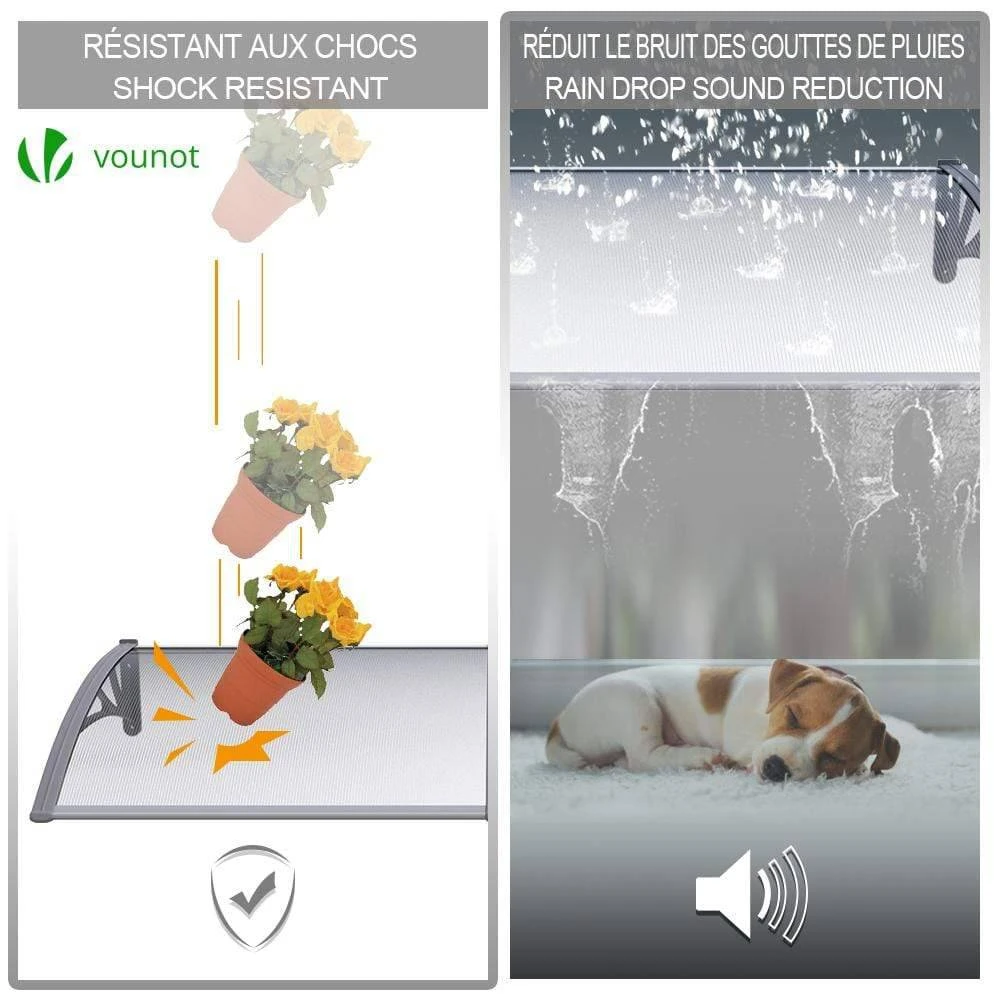 POURQUOI CHOISIR NOTRE PRODUIT ? Notre auvent de porte est une idée parfaite contre tous les intempéries. Cela donne non seulement à la maison une décoration élégante, mais offre également une protection contre le soleil, la pluie et la neige.