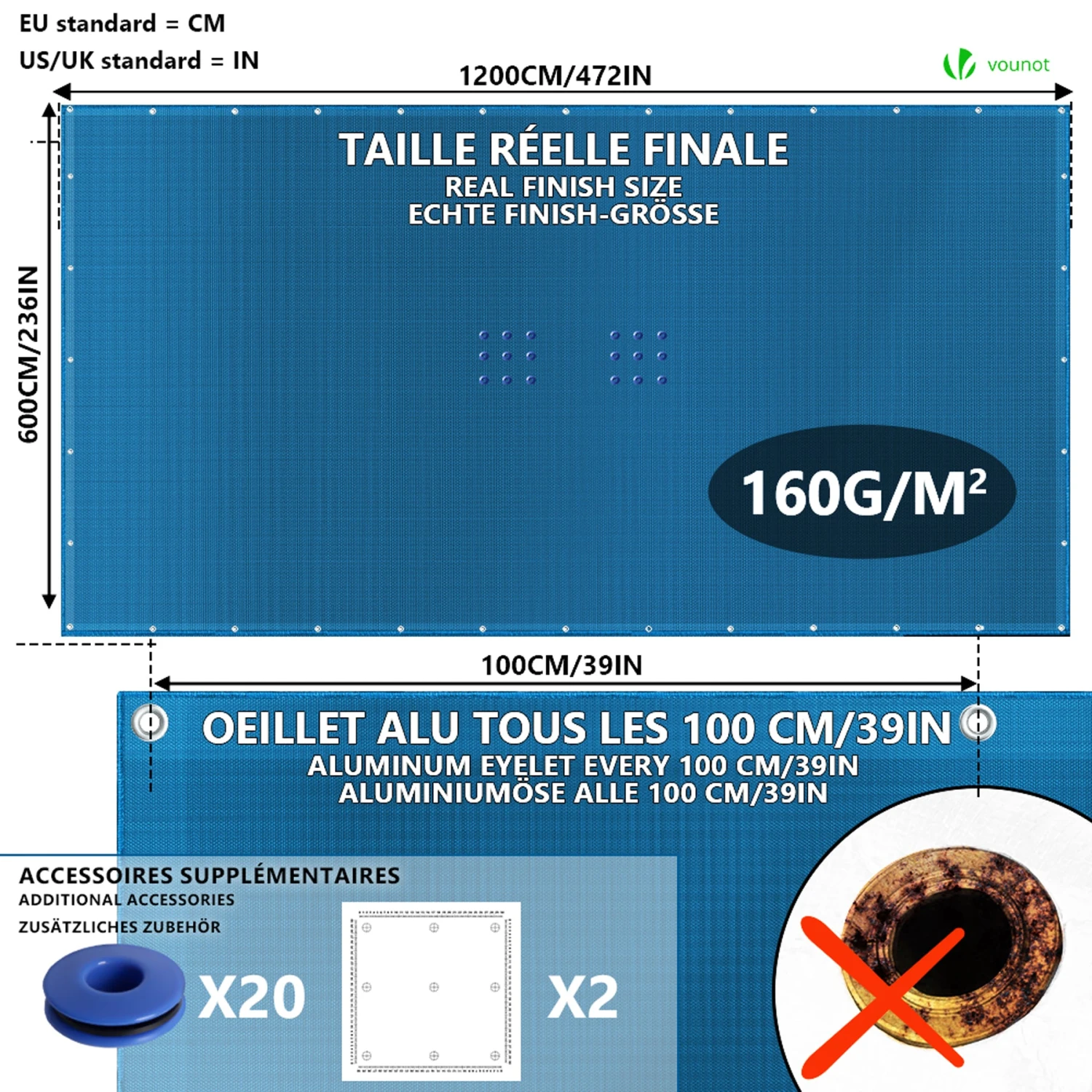 TAILLES RÉELLES FINALES : Notre bâche est conforme à la taille indiquée de la description qui est donc la taille finie et incluant les replis. VOUNOT BÂCHE PISCINE RECTANGULAIRE DOUBLE COUCHE