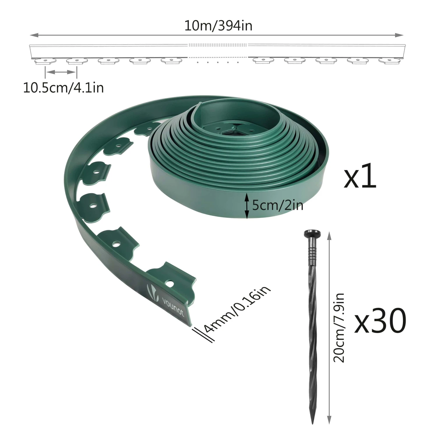 Bordure De Jardin Plastique Flexible 10m Avec Piquets Vert(Bordure De Jardin Plastique Flexible 10m Avec Piquets Vert)