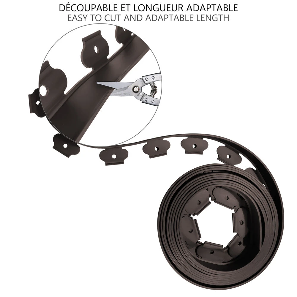 Notre bordure est souple et flexible. Vous pouvez la plier dans tous les angles pour créer la forme que vous souhaitez pour votre parterre sans aucune contrainte. Il vous suffit simplement de créer la forme et de la délimiter avant la pose.