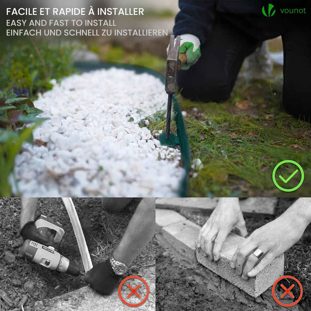 Bordure de Jardin en Plastique avec un Bord Vert Clair Matière : PE, Matériaux recyclés Hauteur : 5cm Modèles diponibles : 10M gris / 20M gris |