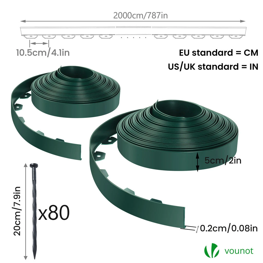 CARACTÉRISTIQUES • Matériaux : PVC, matériaux recyclés • Longueur disponible : 20M, 2*20M • Hauteur : 50mm • Épaisseur : 2mm • Longueur du piquet : 20cm |