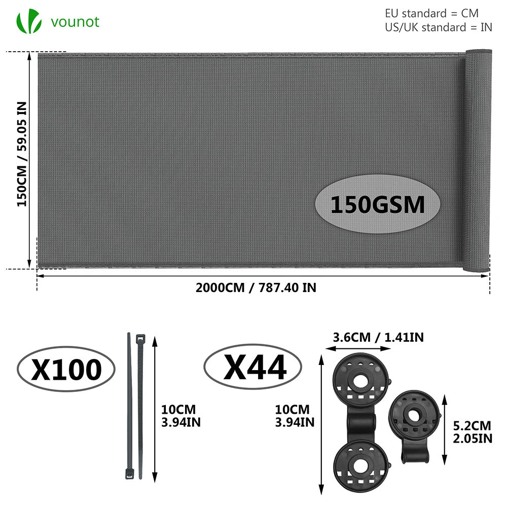Brise Vue Occultant En HDPE 150g/m² 1.5x20m Avec Attaches De Fixation Gris(Brise Vue Occultant En Hdpe 150g M 1 5x20m Avec Attaches De Fixation Gris)