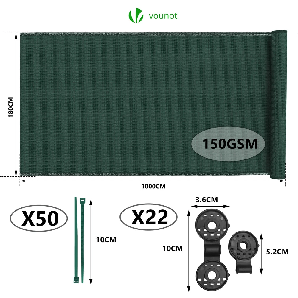 Brise Vue Occultant En HDPE 150g/m² 1.8x10m Avec Attaches De Fixation Vert(Brise Vue Occultant En Hdpe 150g M 1 8x10m Avec Attaches De Fixation Vert)