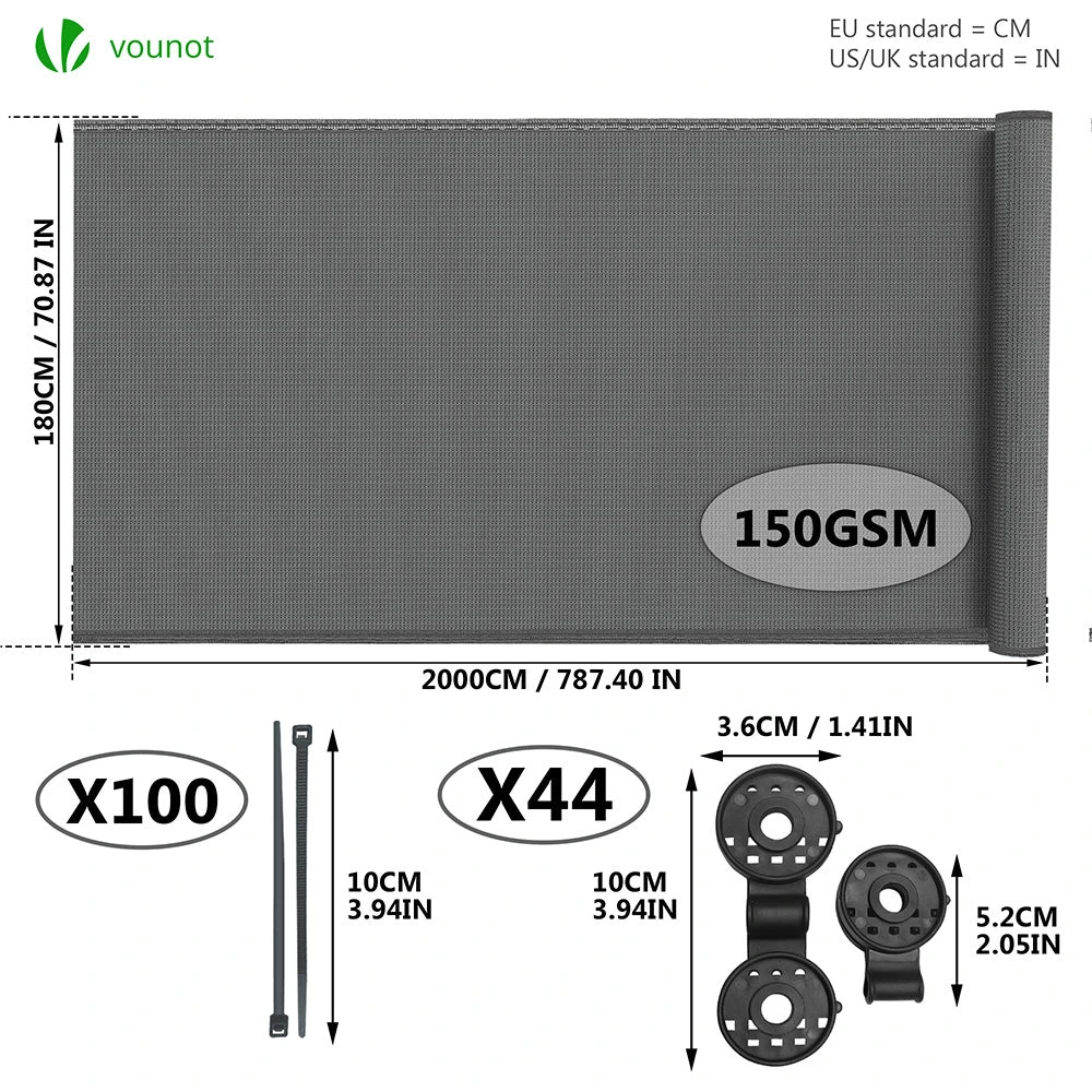 Brise Vue Occultant En HDPE 150g/m² 1.8x20m Avec Attaches De Fixation Gris(Brise Vue Occultant En Hdpe 150g M 1 8x20m Avec Attaches De Fixation Gris)
