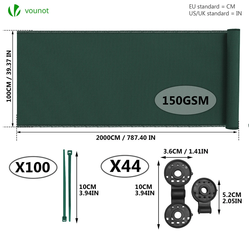 Brise Vue Occultant En HDPE 150g/m² 1x20m Avec Attaches De Fixation Vert(Brise Vue Occultant En Hdpe 150g M 1x20m Avec Attaches De Fixation Vert)