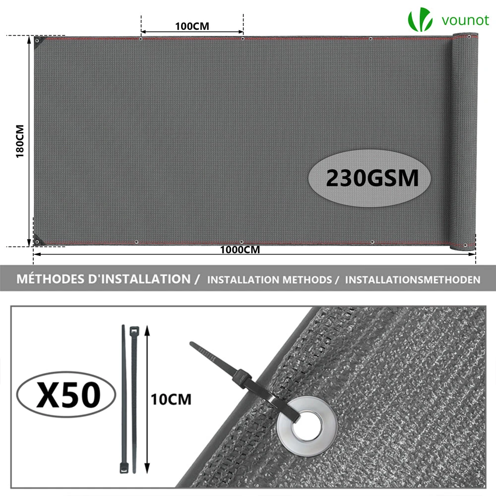 Brise Vue Occultant En HDPE 230g/m² 1.8x10m Avec Attaches De Fixation Gris(Brise Vue Occultant En Hdpe 230g M 1 8x10m Avec Attaches De Fixation Gris)
