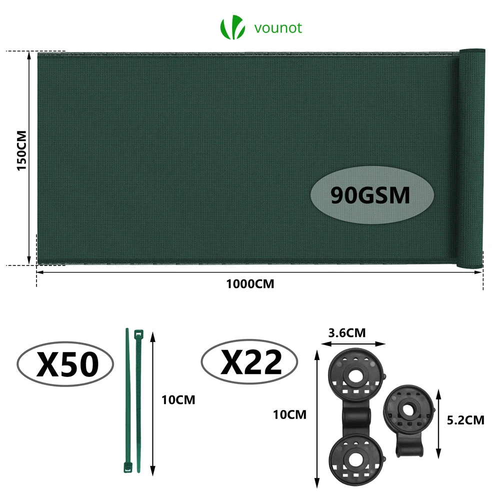 Brise Vue Occultant En HDPE 90g/m² 1.5x10m Avec Attaches De Fixation Vert(Brise Vue Occultant En Hdpe 90g M 1 5x10m Avec Attaches De Fixation Vert)