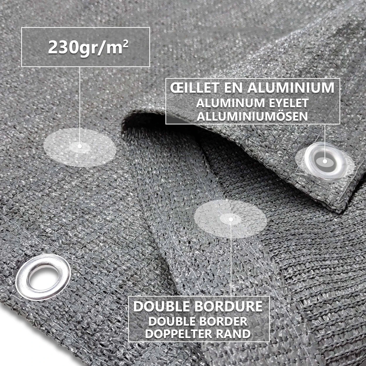 Brise vue occultant en HDPE Matière : Polyéthylène Tailles disponibles : 1x10m, 1.5x10m, 1.8x10m, 1x20m, 1.5x20m, 1.8x20m Couleurs disponibles : Gris, Anthracite, Vert |