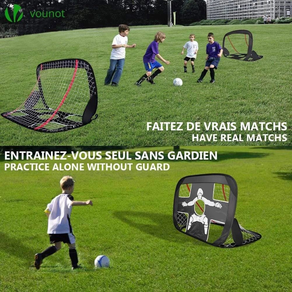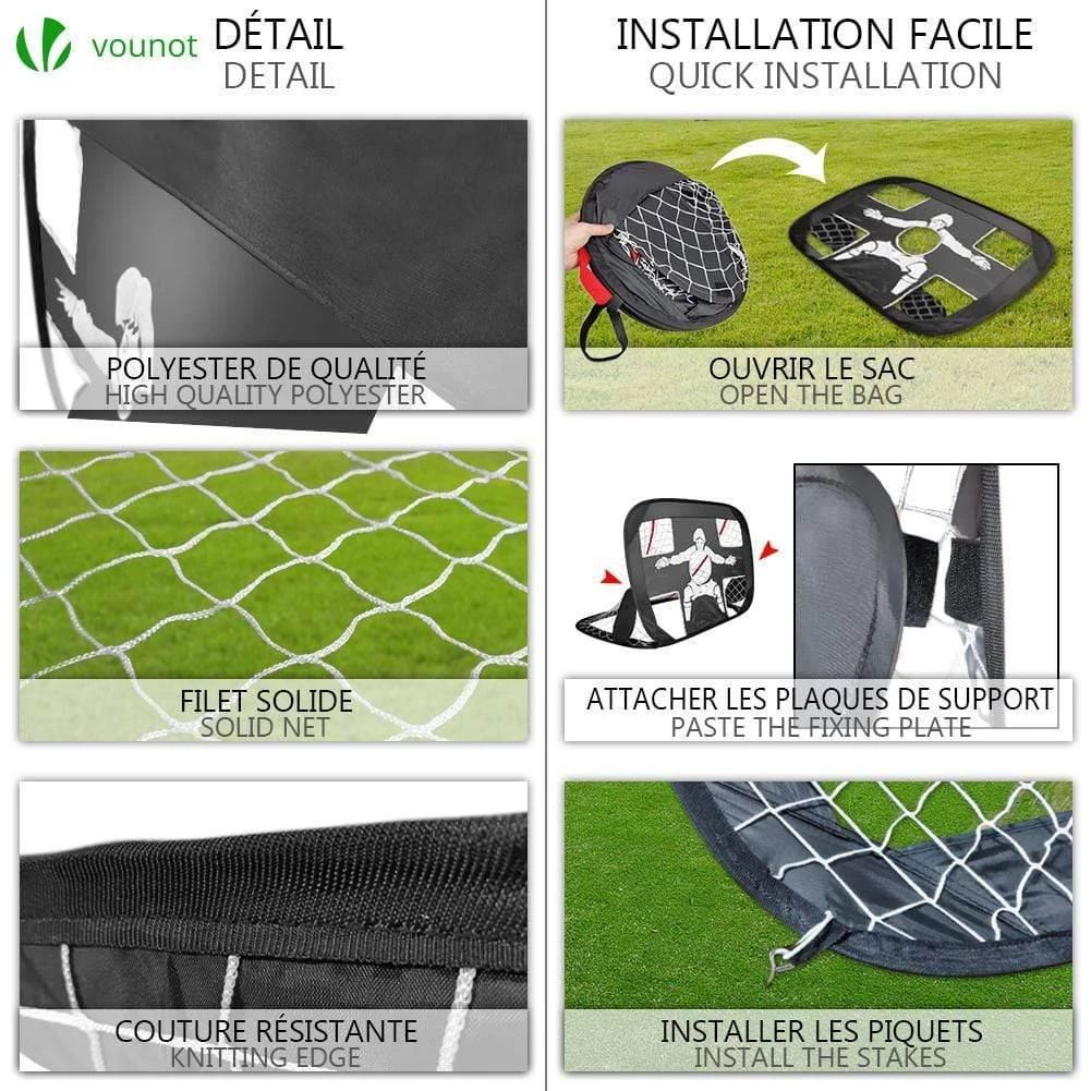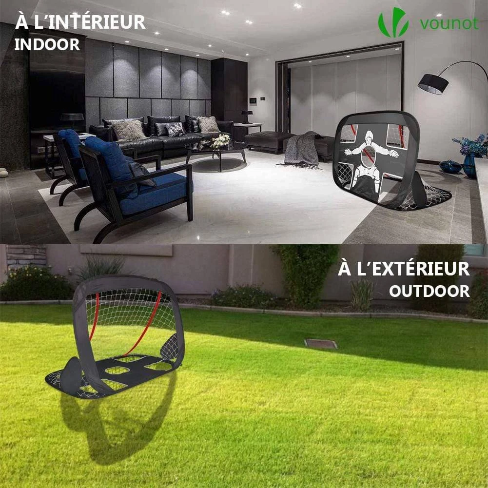 Notre but de foot a 2 fonctions. Vous pouvez utiliser la cage de foot normale pour faire des matchs, mais aussi le transformer en cage d’entraînement pour vous entraîner seul aux tirs.