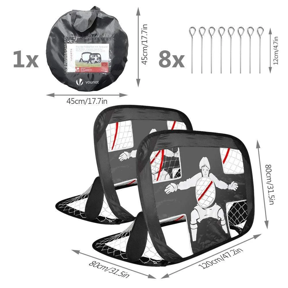 Le but de foot est fait en tissu oxford résistant et il comprend des piquets de fixation.