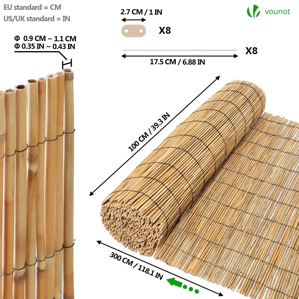 Canisse En Roseau Renforcée Brise Vue Naturel Avec Attaches De Fixation 100x300cm(Canisse En Roseau Renforcee Brise Vue Naturel Avec Attaches De Fixation 100x300cm)