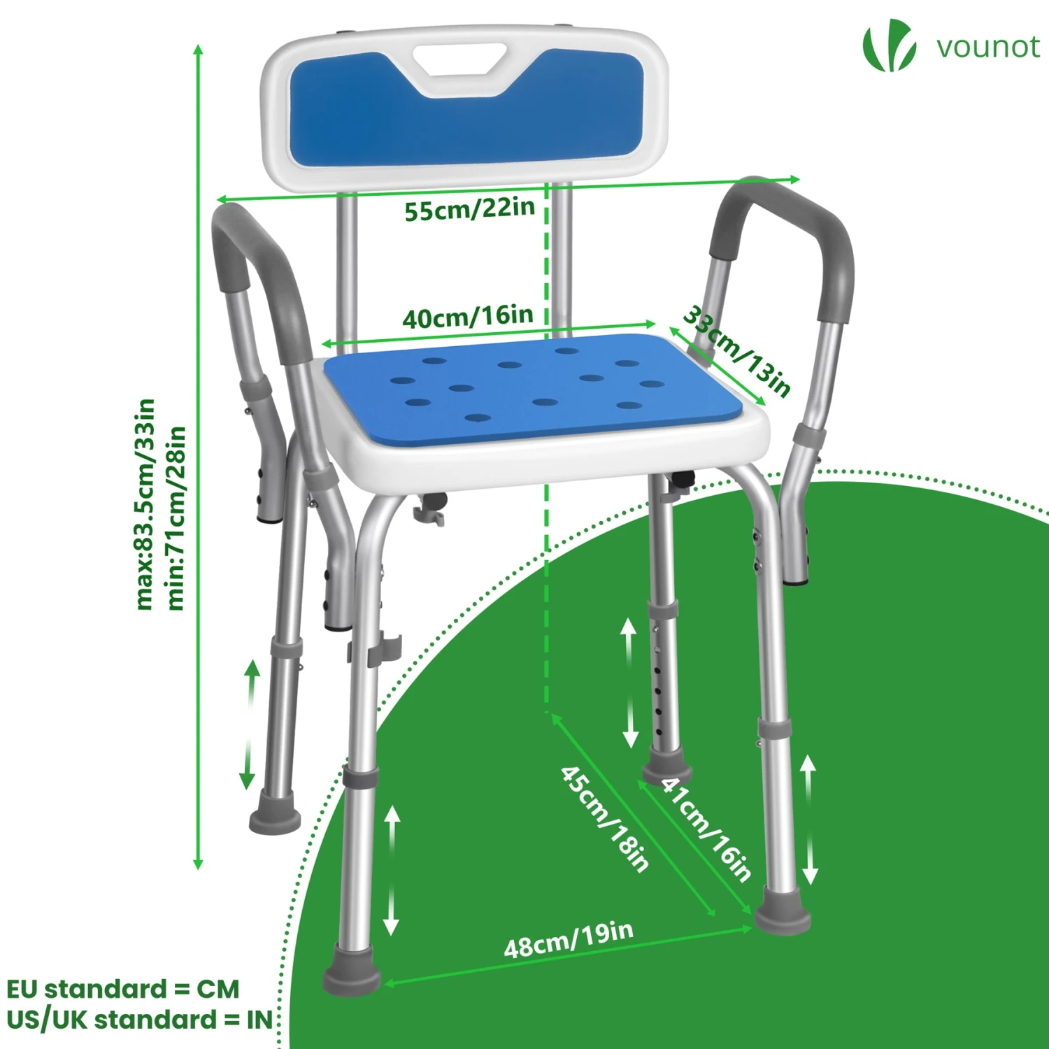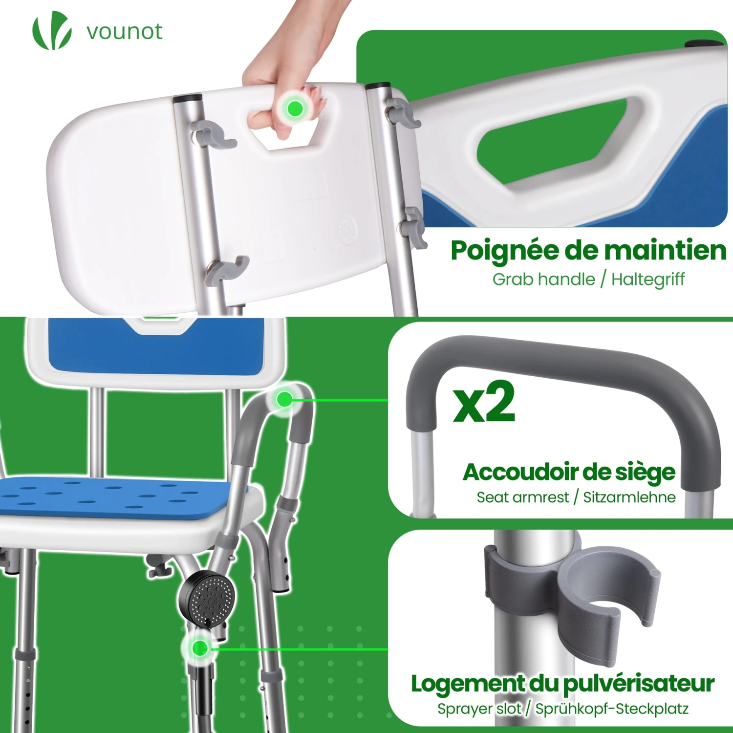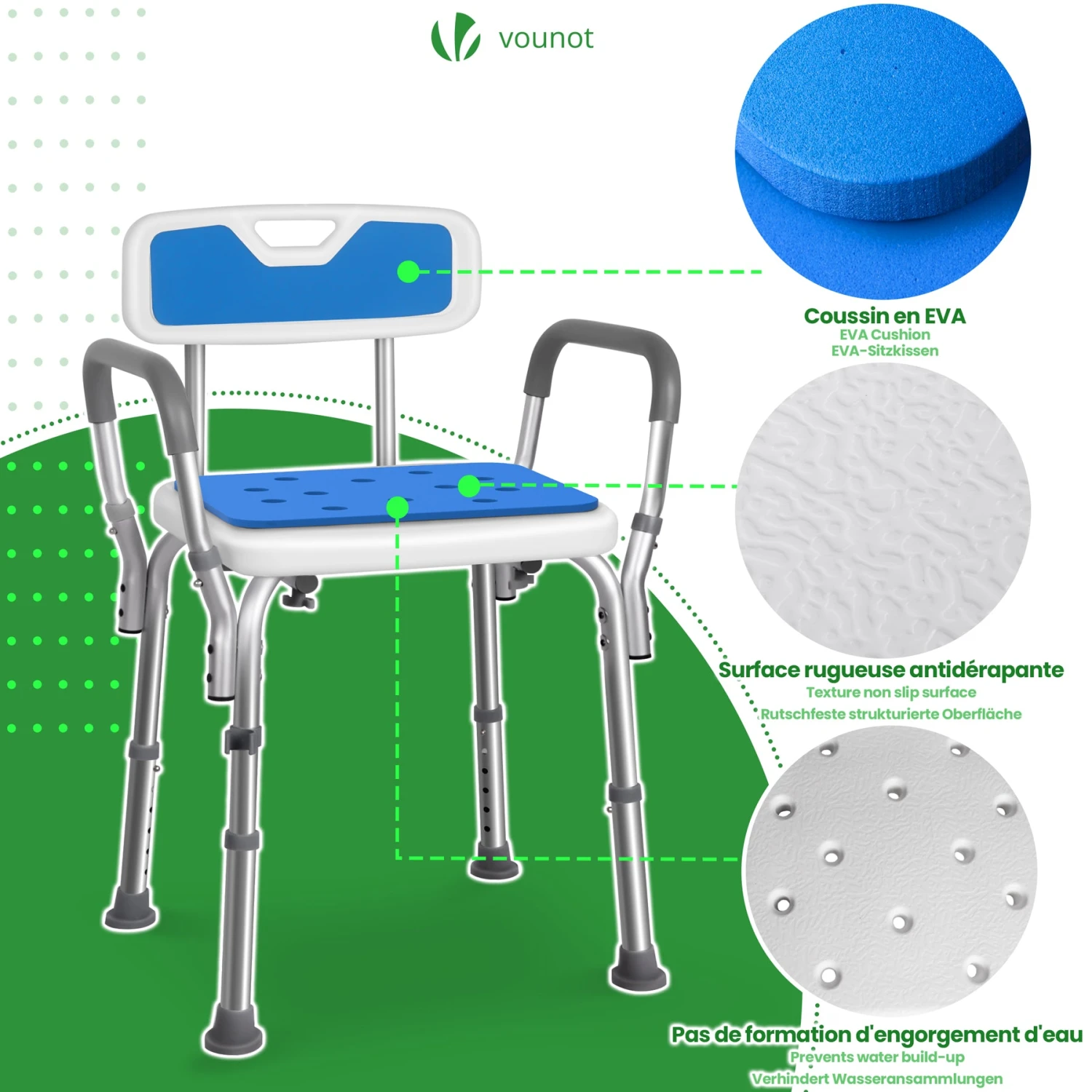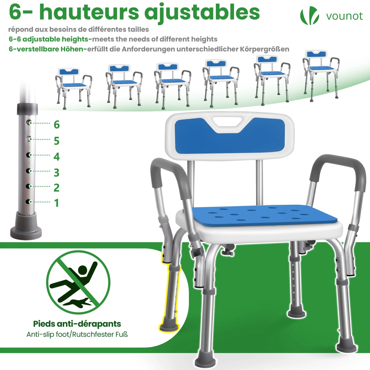 Chaise De Douche Avec Accoudoir Et Dossier Ergonomique A Hauteur Reglable En Aluminum HDPE Bleu(Chaise De Douche Avec Accoudoir Et Dossier Ergonomique A Hauteur Reglable En Aluminum Hdpe Bleu)