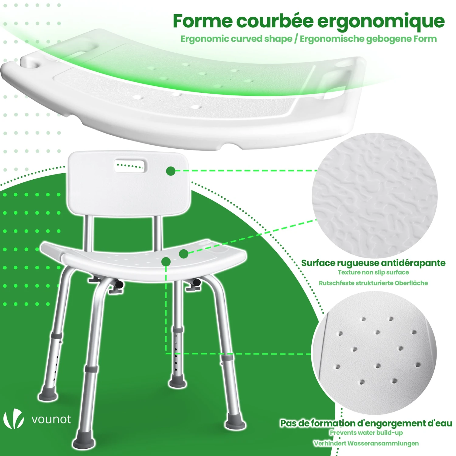 Chaise De Douche Avec Dossier Ergonomique A Hauteur Reglable En Aluminum HDPE Blanc(Chaise De Douche Avec Dossier Ergonomique A Hauteur Reglable En Aluminum Hdpe Blanc)