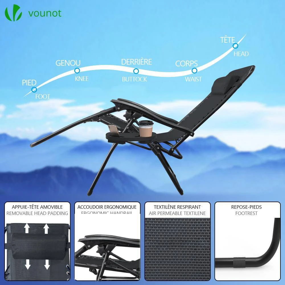 Chaise Longue Inclinable En Testilene Avec Porte Gobelet Et Portable Noir Lot De 2(Chaise Longue Inclinable En Testilene Avec Porte Gobelet Et Portable Noir Lot De 2)