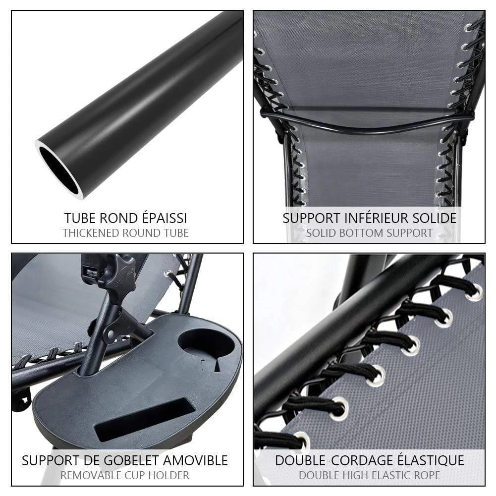 | Lot de 2 chaise longue gris | Lot de 2 chaise longue noir | Lot de 2 chaise longue bleu |