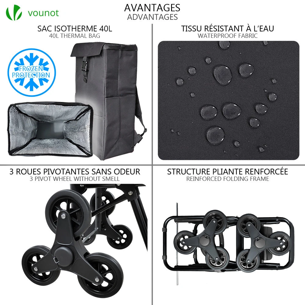 | Chariot de courses pliable monte escalier bleu | Chariot de courses pliable monte escalier noir | Chariot de courses pliable monte escalier style oxford gris | Chariot de courses pliable monte escalier style oxford noir |