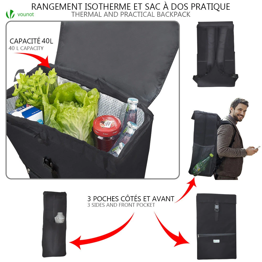 Bande pour la fermeture – Sac de rangement isotherme de 40L – Petit compartiment avec fermeture à glissière CARACTÉRISTIQUES • Dimensions du sac: env. 33x20x55 cm IMPORTANT : Les livraisons se font en France métropolitaine à l’exception des îles qui ne sont pas reliées au continent par un pont (Corse, Ile d’Yeux etc.) et des DOM-TOM. |