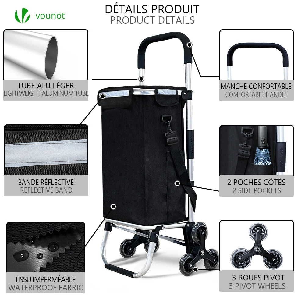 | Chariot de courses pliable monte escalier bleu | Chariot de courses pliable monte escalier noir | Chariot de courses pliable monte escalier style oxford gris | Chariot de courses pliable monte escalier style oxford noir |