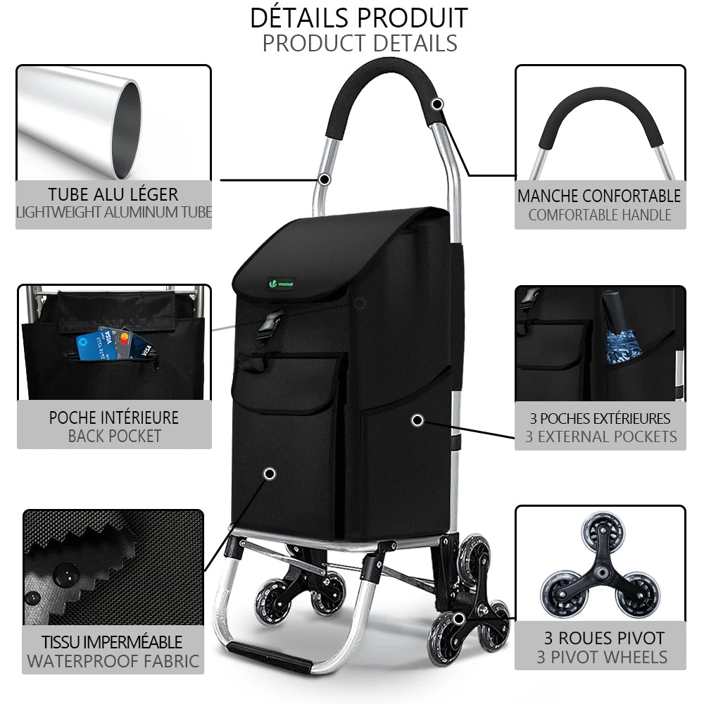 | Chariot de courses pliable monte escalier bleu | Chariot de courses pliable monte escalier noir | Chariot de courses pliable monte escalier style oxford gris | Chariot de courses pliable monte escalier style oxford noir |