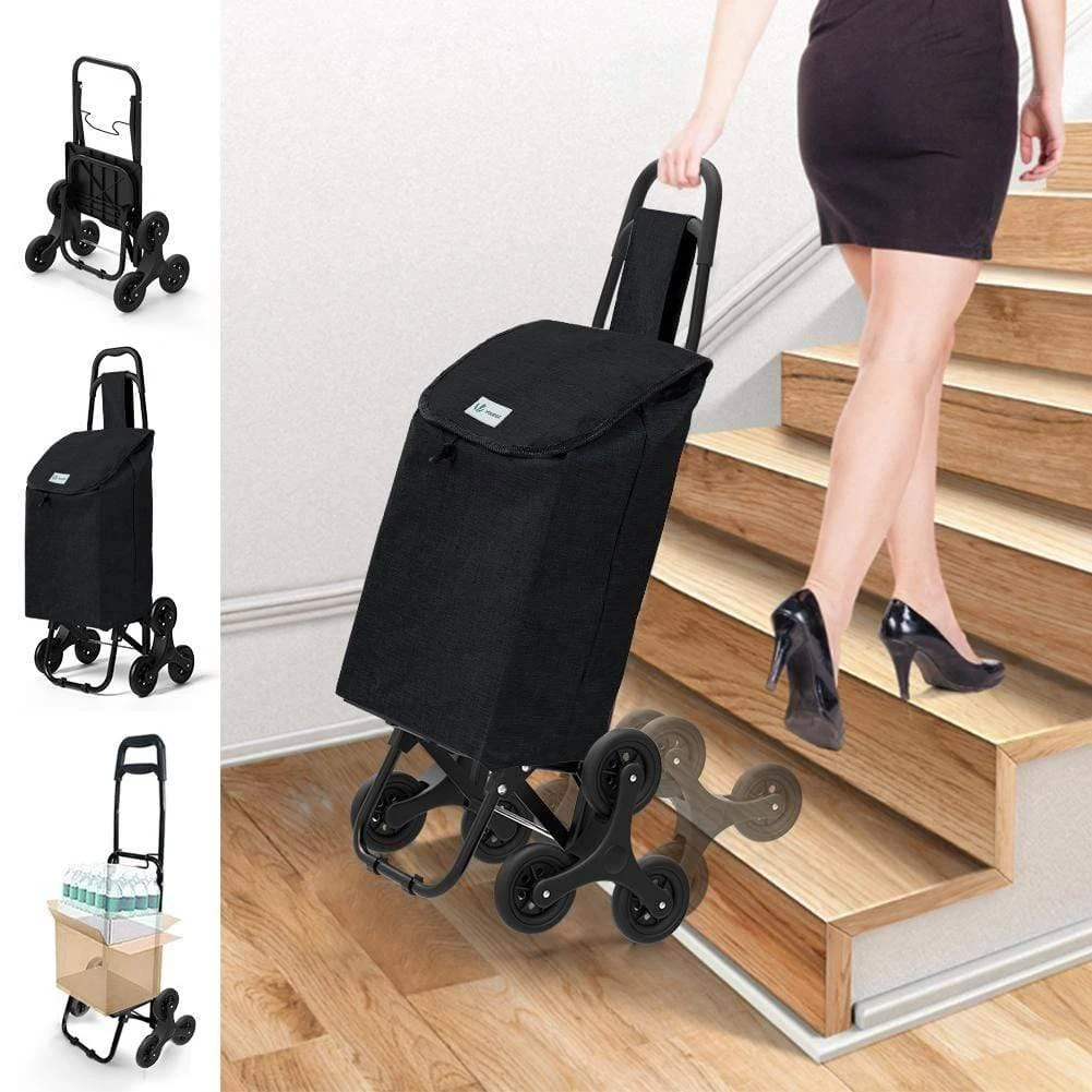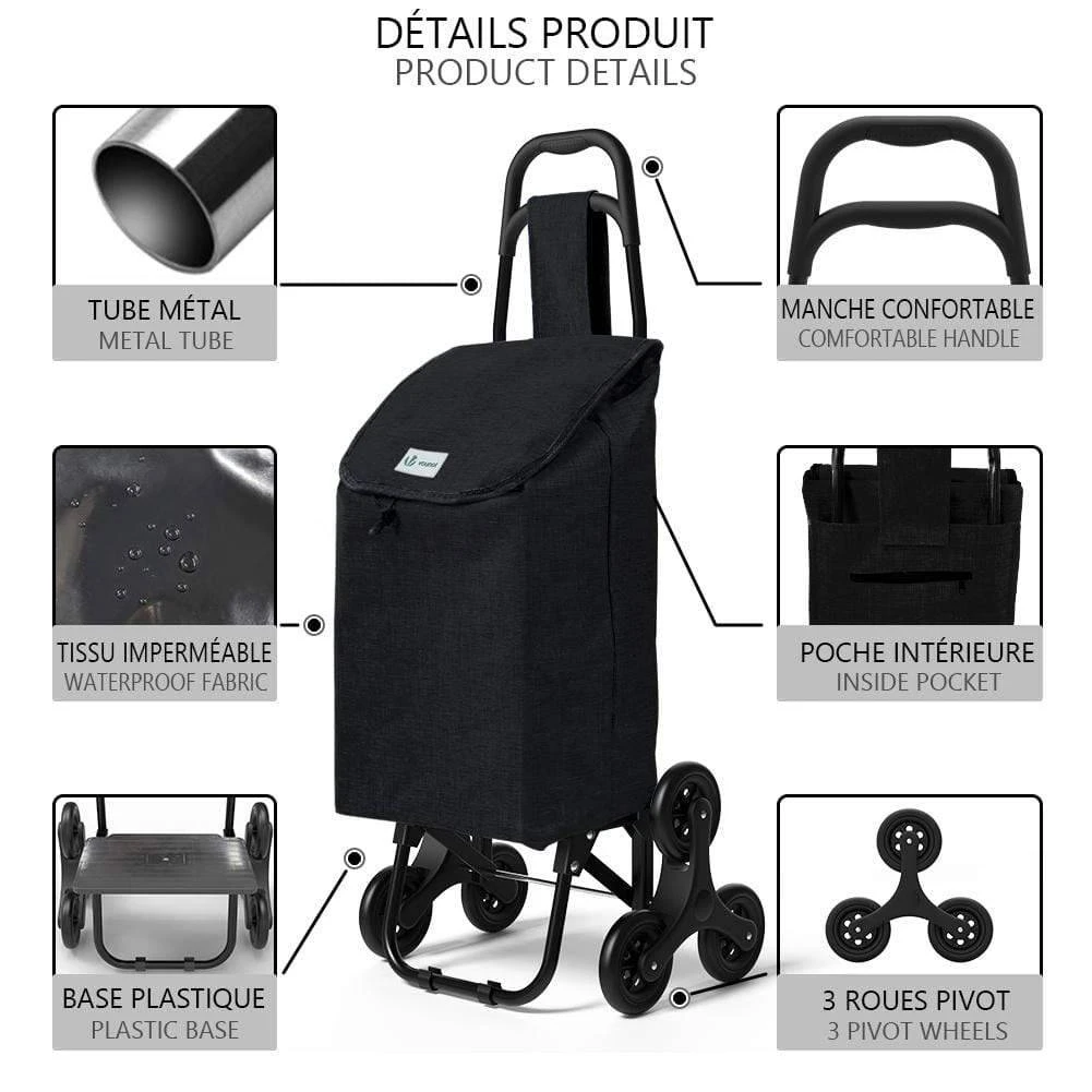 Chariot De Courses Pliable Monte Escalier Style Oxford Noir(Chariot De Courses Pliable Monte Escalier Style Oxford Noir)