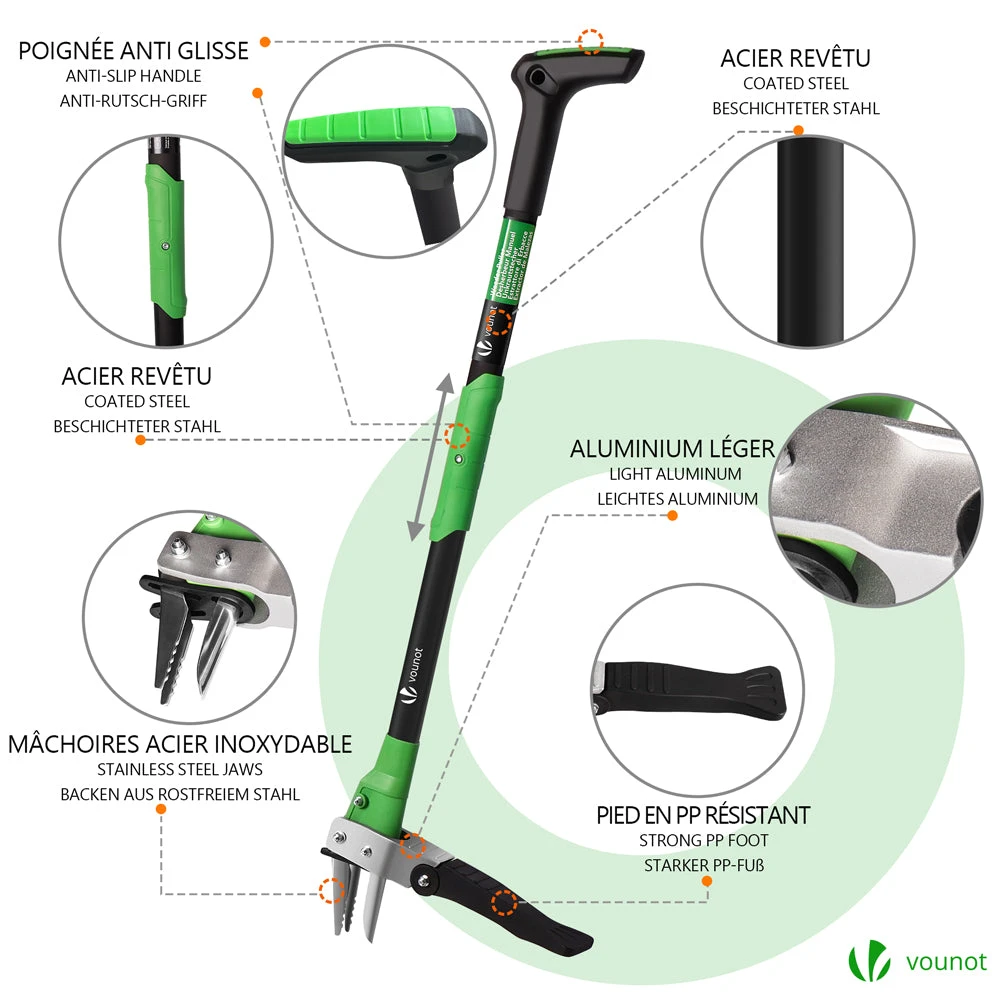 Ce kit de jardinage comprenant un désherbeur manuel et une fourchette à main est l’outil idéal pour éliminer efficacement les mauvaises herbes, offrant confort, durabilité et facilité d’utilisation pour un jardin impeccable. Etapes d’utilisation du désherbeur manuel: