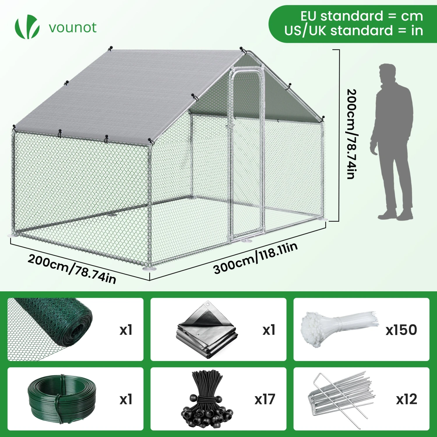 - Avec ses dimensions spacieuses de 300x200x200 cm, cet enclos offre un large espace de vie, permettant à vos animaux de basse-cour de se déplacer librement, de se reposer et de grandir dans les meilleures conditions.