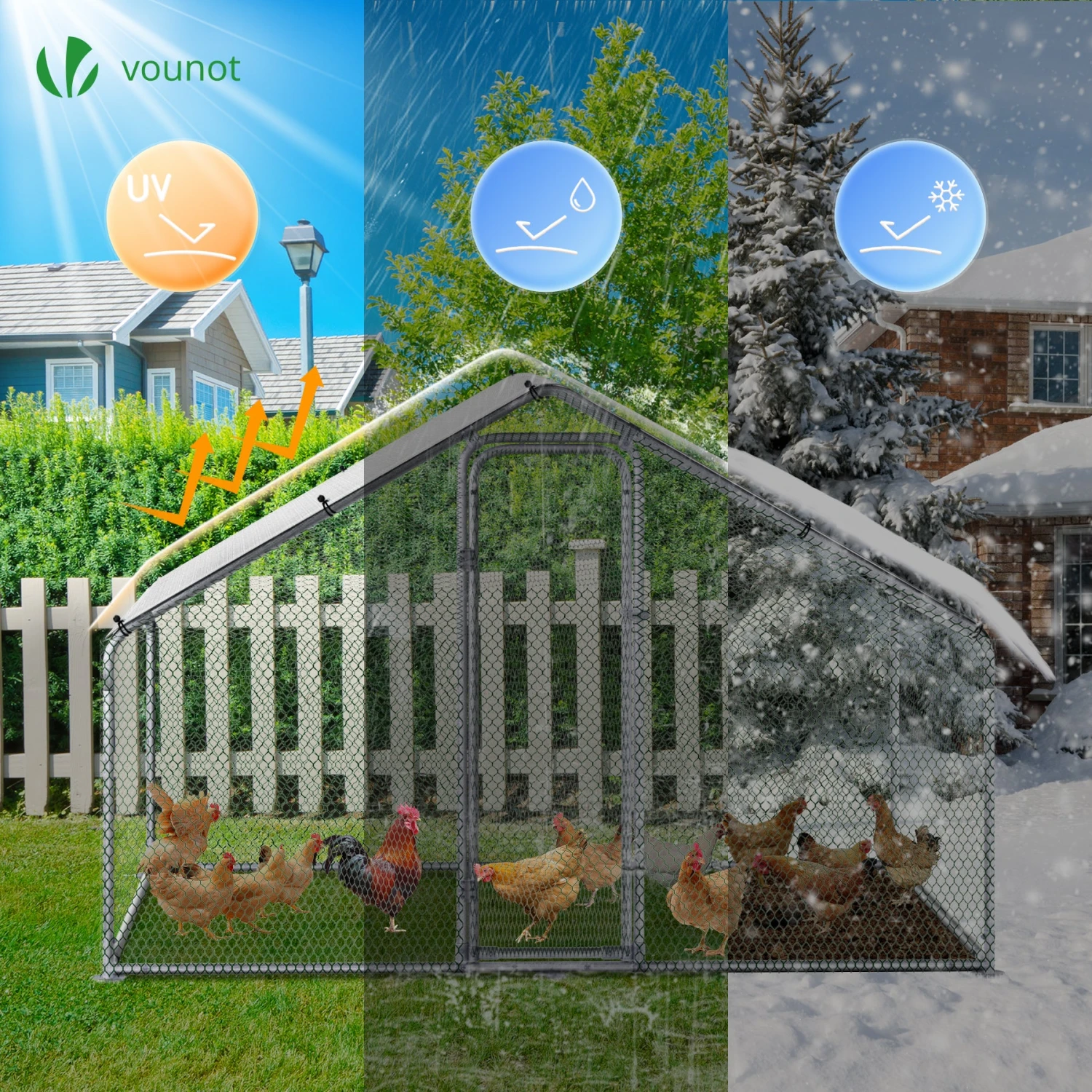 - Équipé d’une bâche de toit en PE 240 g/m², imperméable et résistante aux UV, cet enclos poulailler protège efficacement vos animaux de la pluie, du vent et du soleil. Il leur garantit un habitat confortable et sécurisé en toute saison.