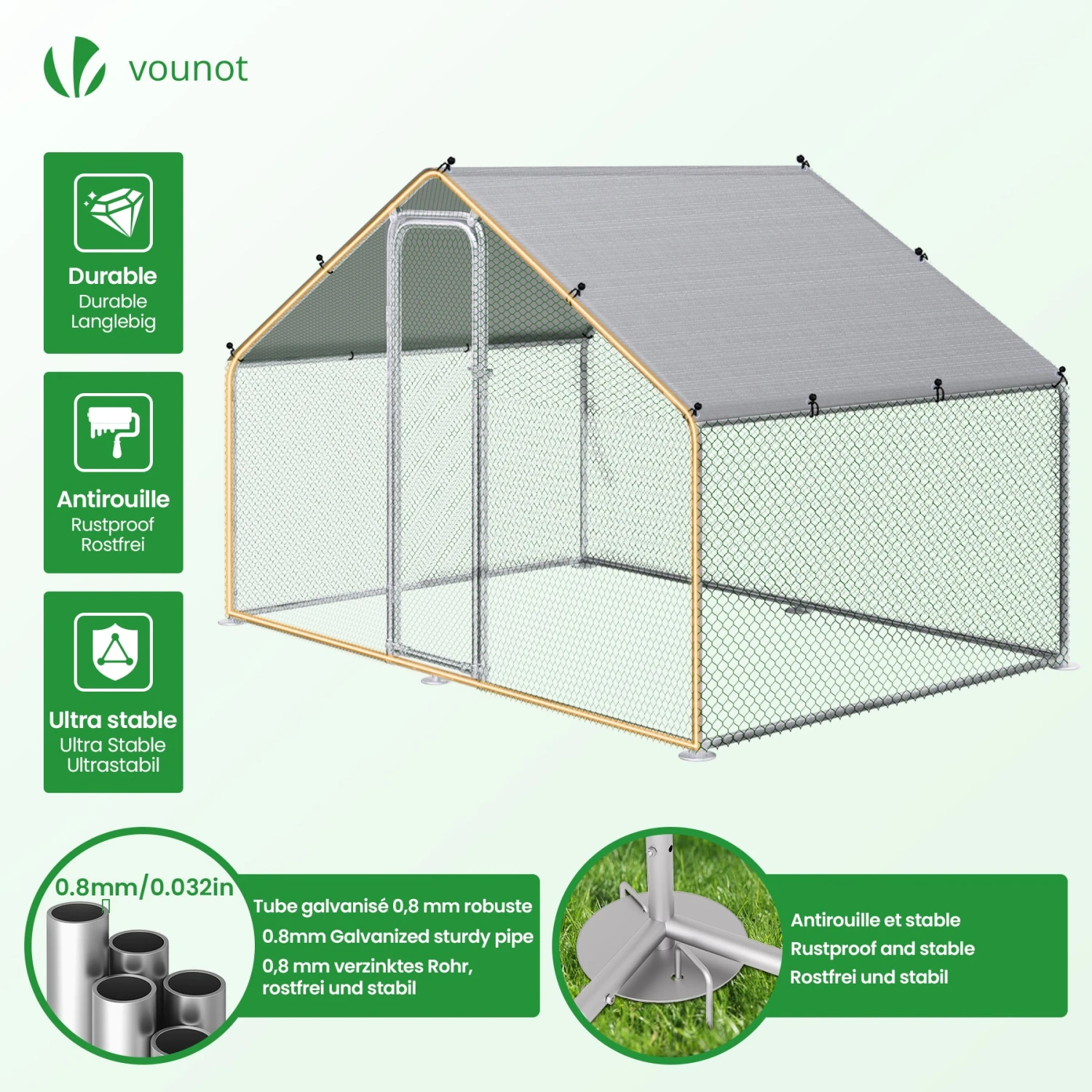 - Conçu avec des tubes en métal galvanisé épais et résistants, ce parc poulailler offre une structure solide, garantissant robustesse et durabilité. Le revêtement galvanisé protège efficacement contre la rouille et la corrosion, et son grillage robuste maintient vos animaux en sécurité tout en assurant une bonne circulation de l’air.