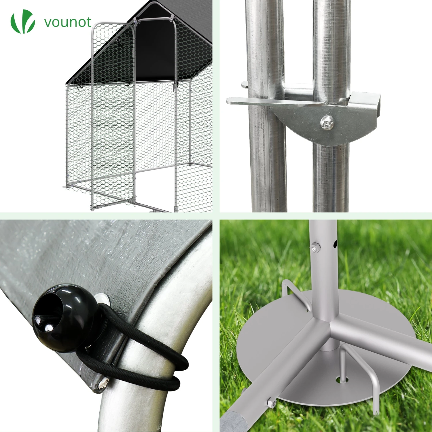 - Livré avec tous les accessoires nécessaires, y compris les colliers de serrage, les sandows à boule, les piquets de fixation et autres éléments de montage, cette volière extérieure convient parfaitement pour accueillir divers animaux tels que poules, canards, oies, lapins, oiseaux, petits chiens ou chats.