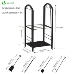 Porte Buches Cheminee Avec 4 Outils En Metal Noir(Porte Buches Cheminee Avec 4 Outils En Metal Noir)
