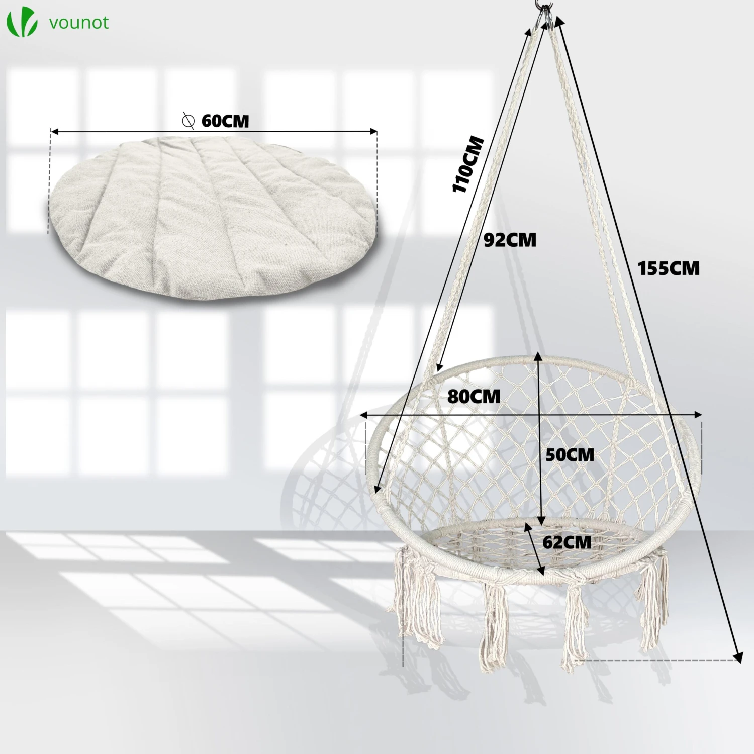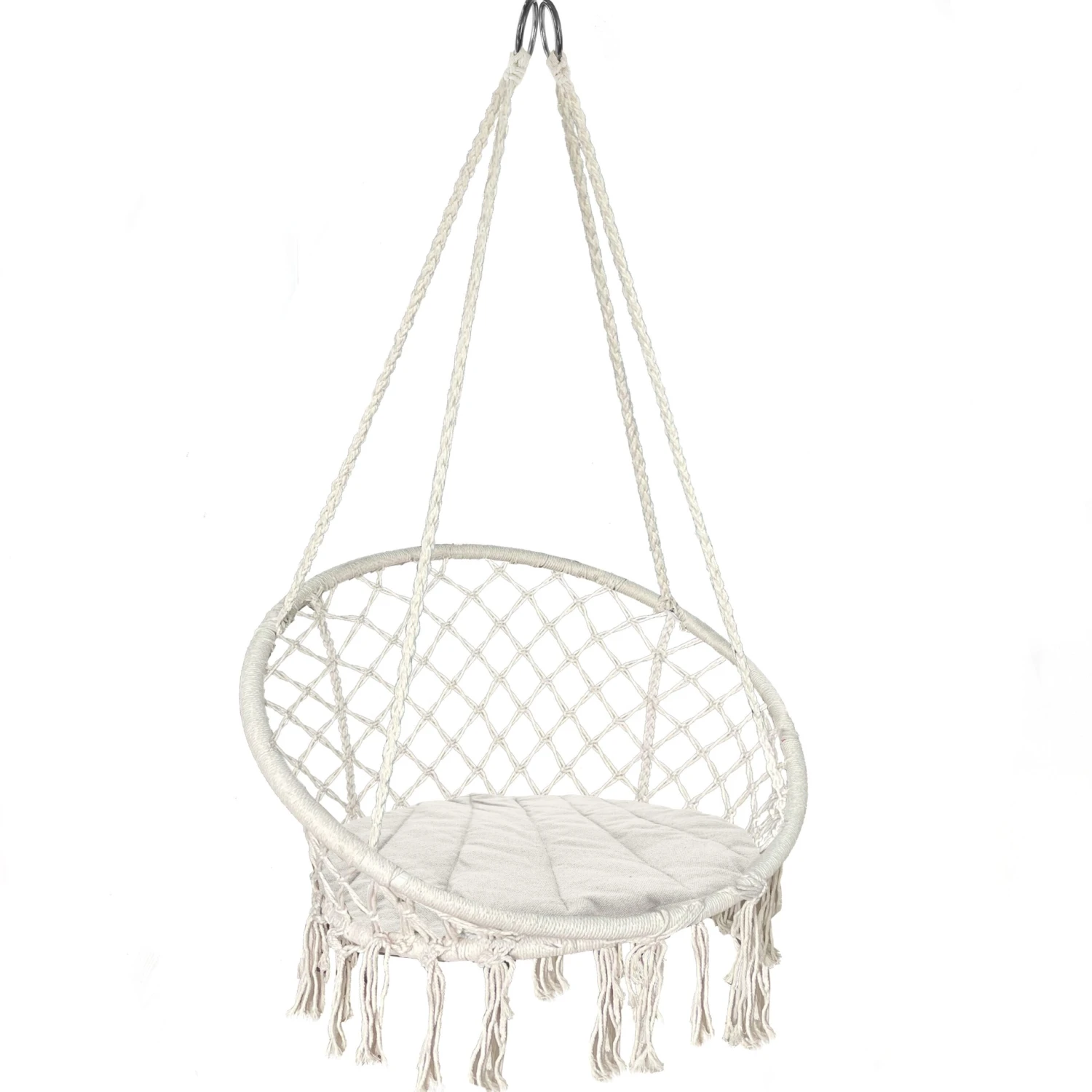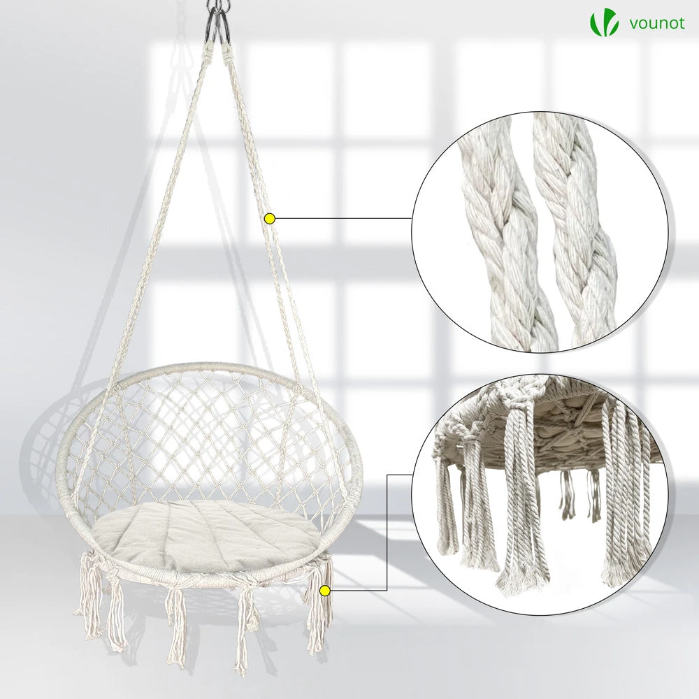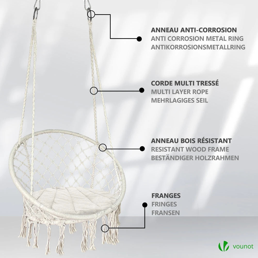 | Fauteuil suspendu avec coussin rond noir | Fauteuil suspendu avec coussin rond gris | Fauteuil suspendu avec coussin rond beige |