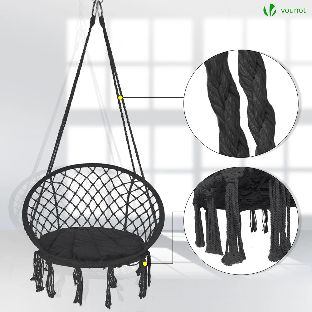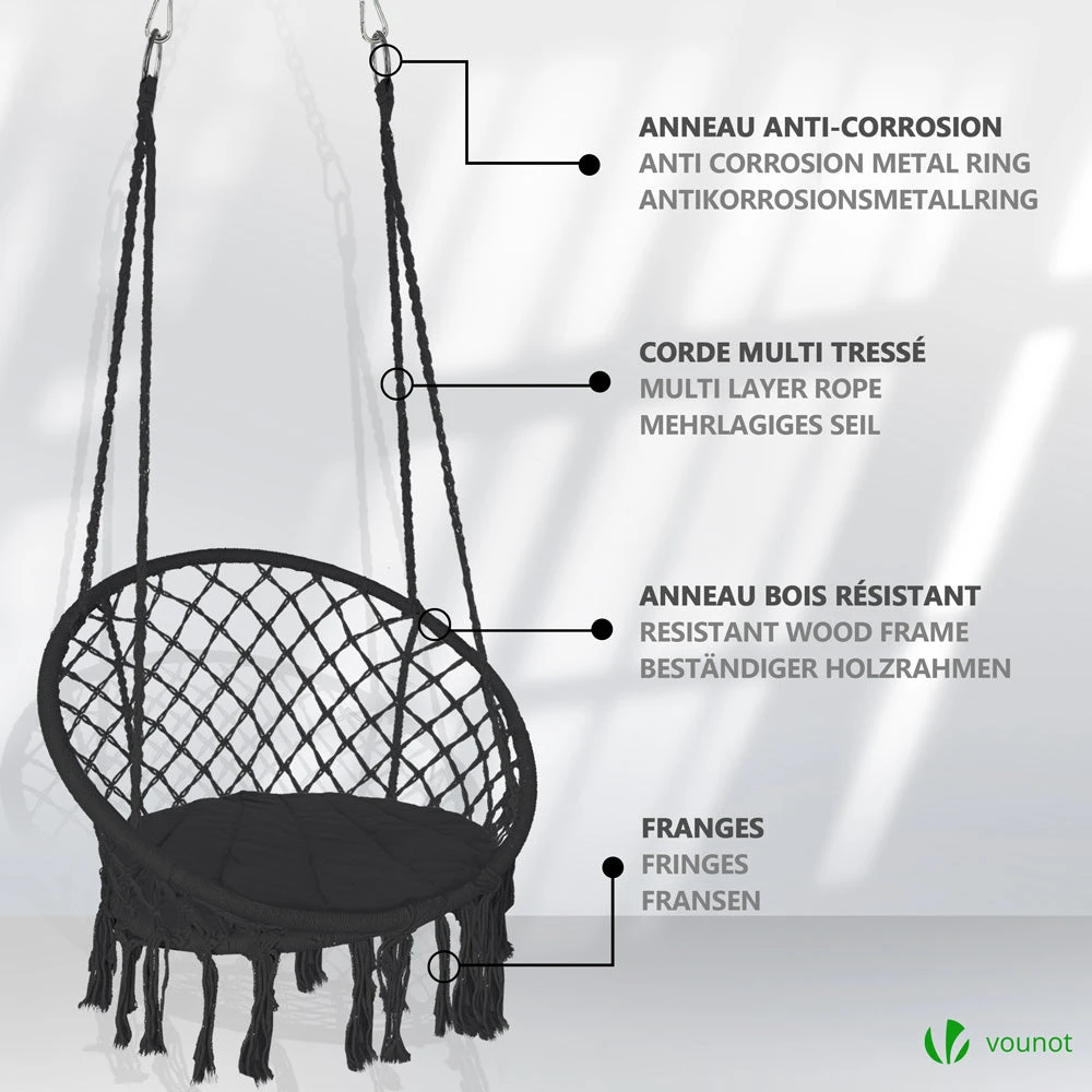 | Fauteuil suspendu avec coussin rond noir | Fauteuil suspendu avec coussin rond gris | Fauteuil suspendu avec coussin rond beige |