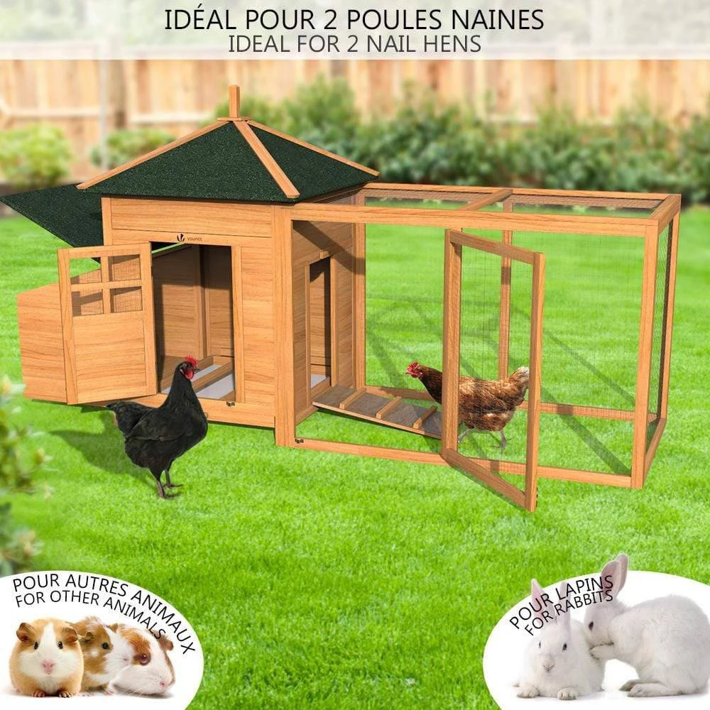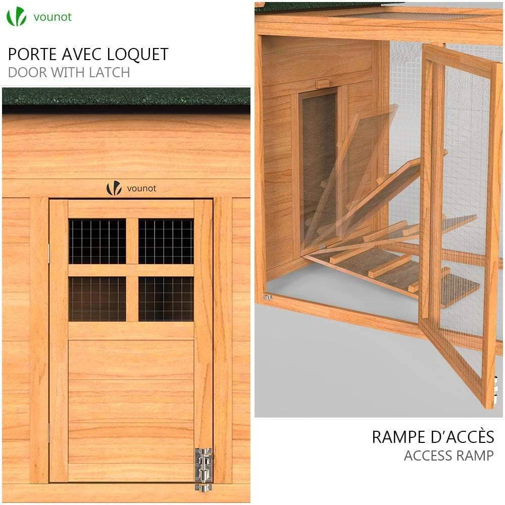 Avantages du produit – Toit imperméable Grande Espace Notre poulailler dispose d’un grand espace d’activité. Vos animaux peuvent profiter librement et en toute sécurité de l’air frais et du soleil à l’intérieur du grillage.