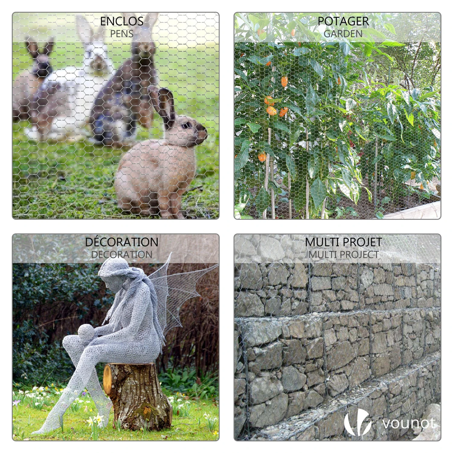 NE ROUILLE PAS. La surface de notre grillage hexagonal est recouverte d’un revêtement galvanisé. Cela en fait une utilisation à long terme et ne rouille pas et ne se déforme pas. Cette clôture peut être coupée à l’aide d’une paire de ciseaux selon les besoins et pliér dans la forme souhaitée. CARACTÉRISTIQUES • Type de matériau : fil galvanisé IMPORTANT : Les livraisons se font en France métropolitaine à l’exception des îles qui ne sont pas reliées au continent par un pont (Corse, Ile d’Yeux etc.) et des DOM-TOM. |