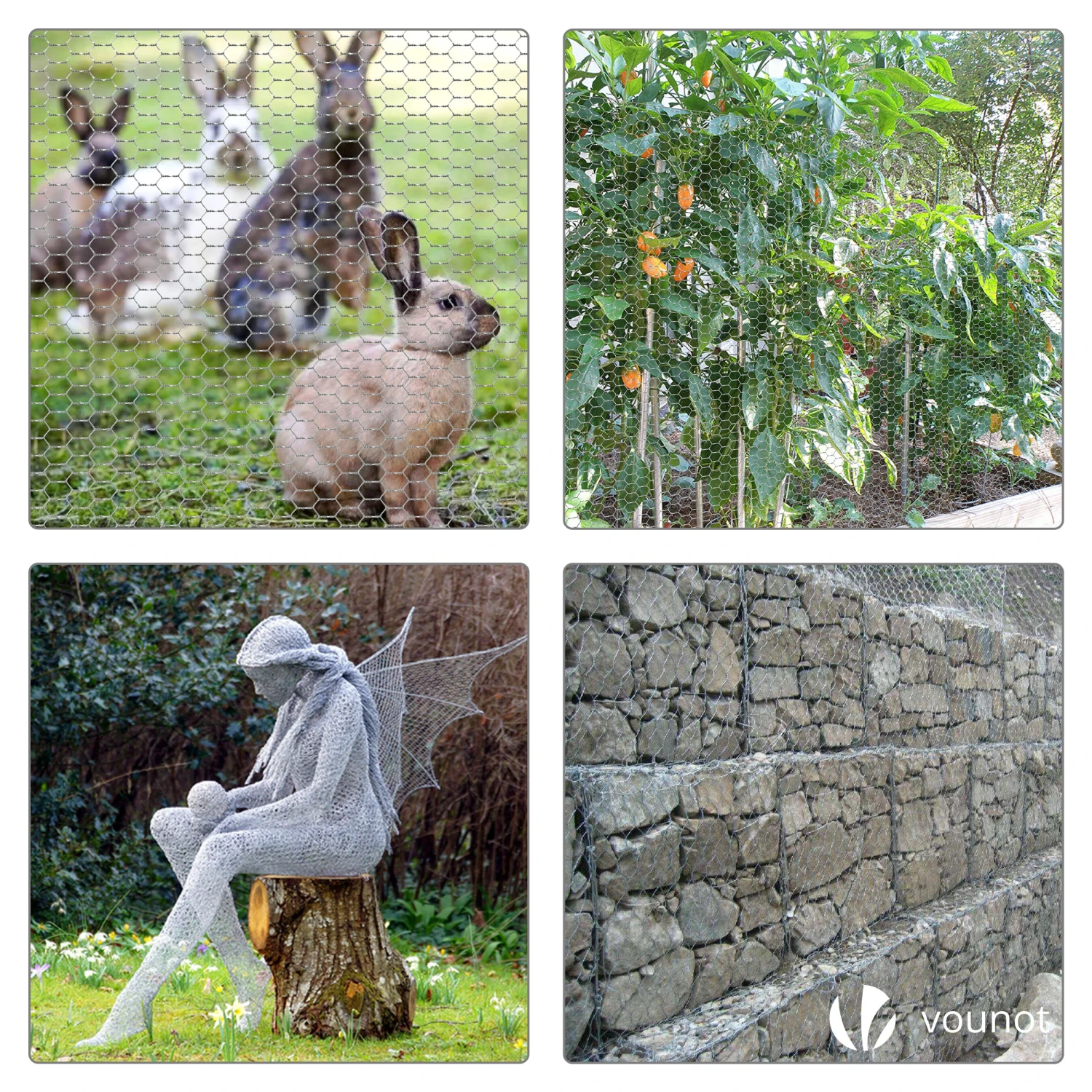 NE ROUILLE PAS. La surface de notre grillage hexagonal est recouverte d’un revêtement PVC. Cela en fait une utilisation à long terme et ne rouille pas et ne se déforme pas. Cette clôture peut être coupée à l’aide d’une paire de ciseaux selon les besoins et pliér dans la forme souhaitée.