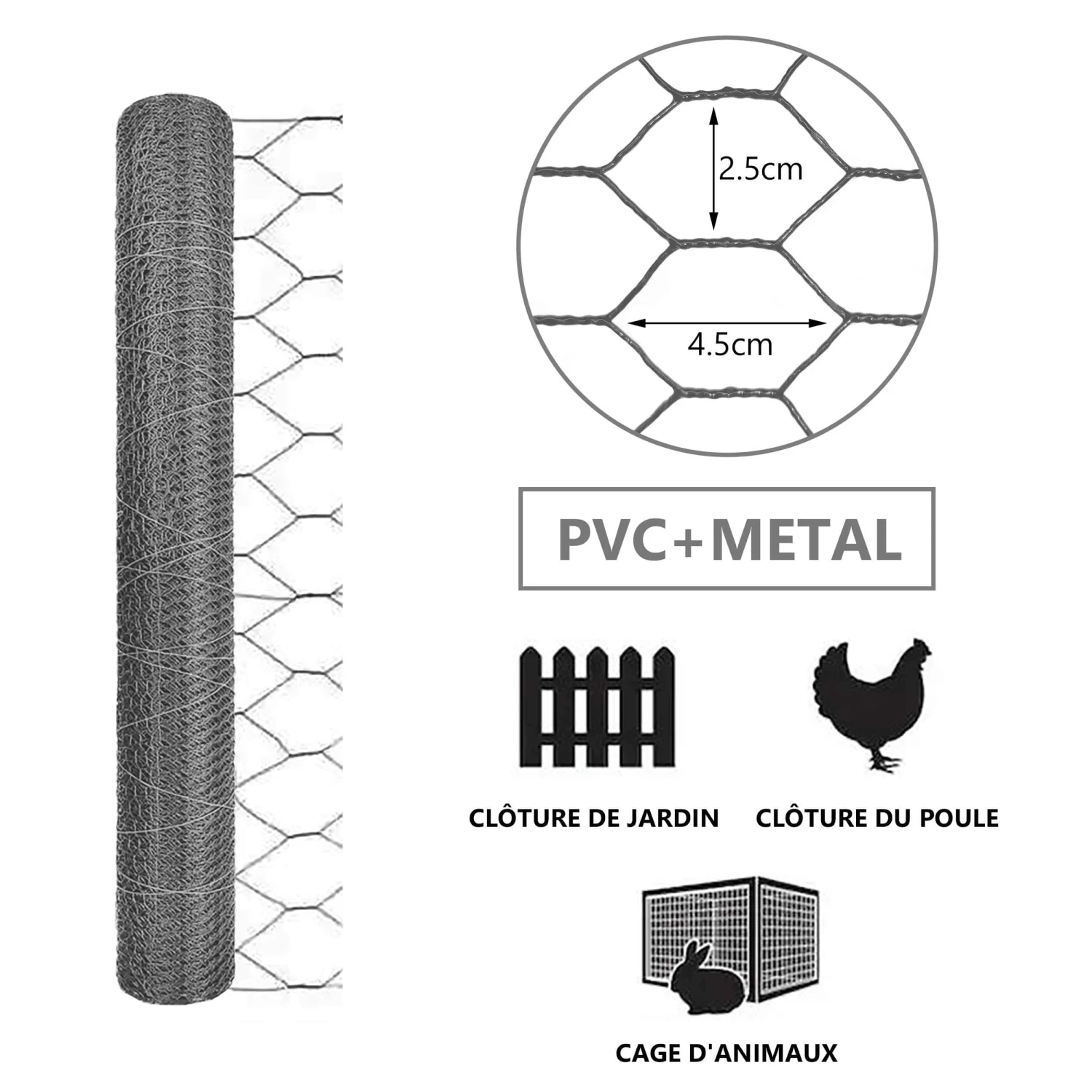 | Grillage a poule en acier galvanise Maille 25mm | Grillage a poule en PVC gaine vert Maille 25mm | Grillage a poule en PVC gaine gris Maille 25mm |