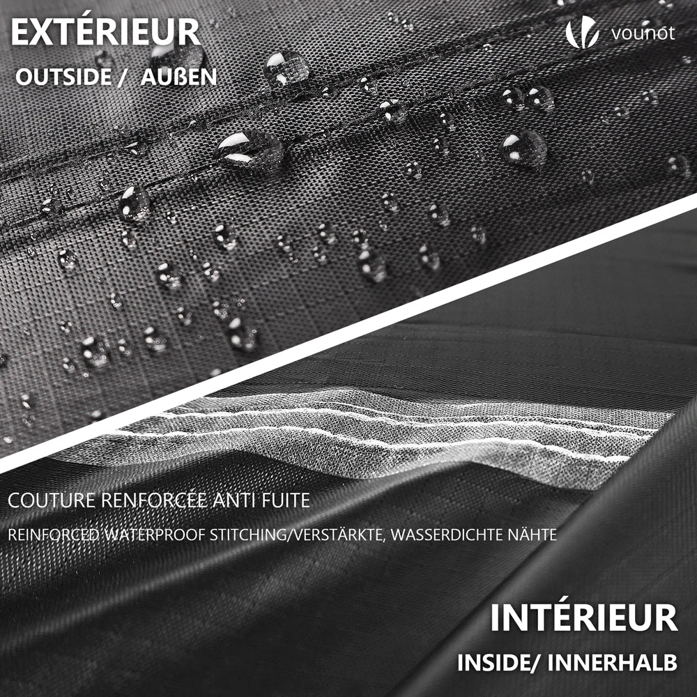 Oxford 420D deux couches de revêtement polyuréthane | Résister à une pression d’eau allant jusqu’à 3000PA | Coutures renforcées | Poignée intégrée Deux fenêtres de ventilation | Boucles de fixation | Cordons de serrage | Sac de rangement CARACTÉRISTIQUE