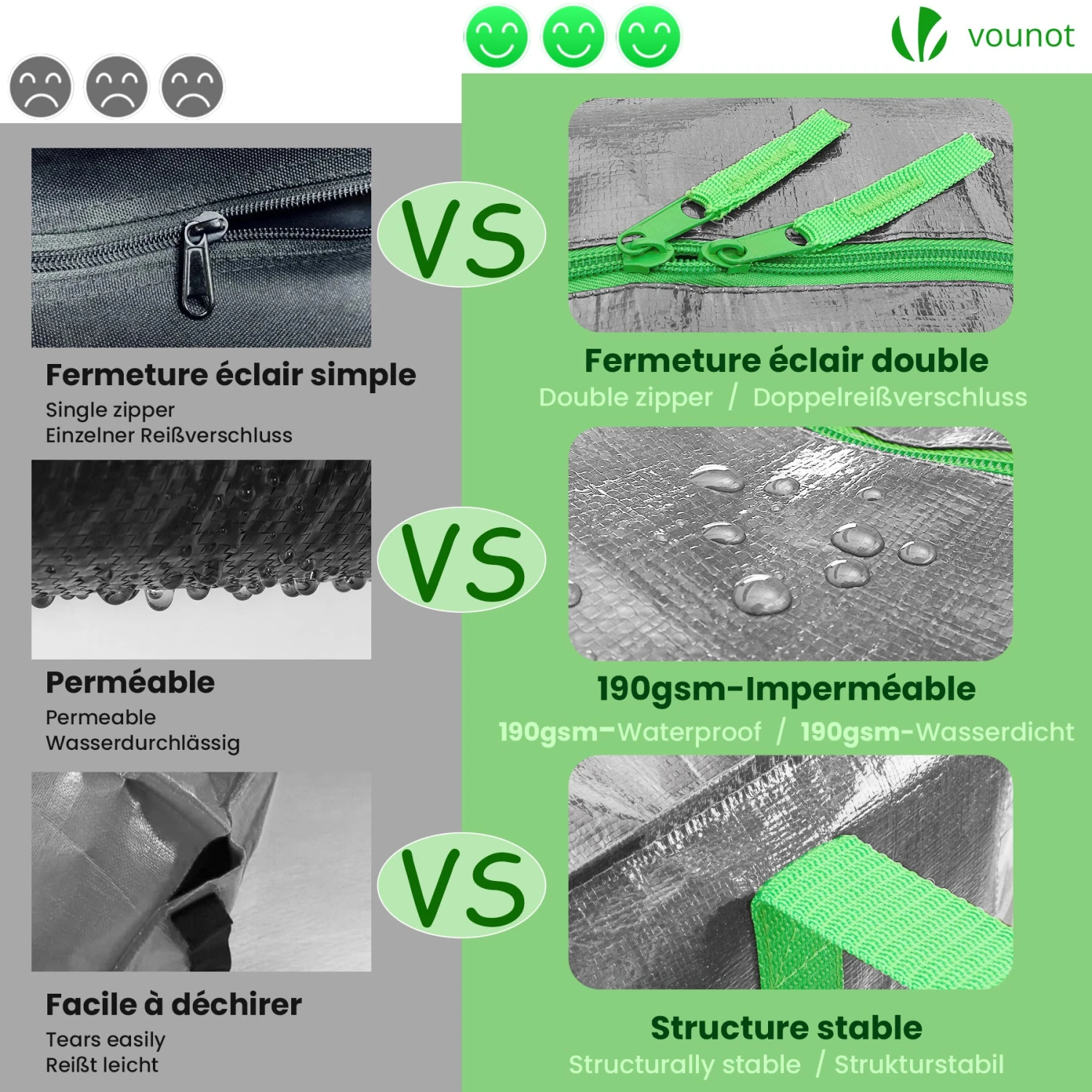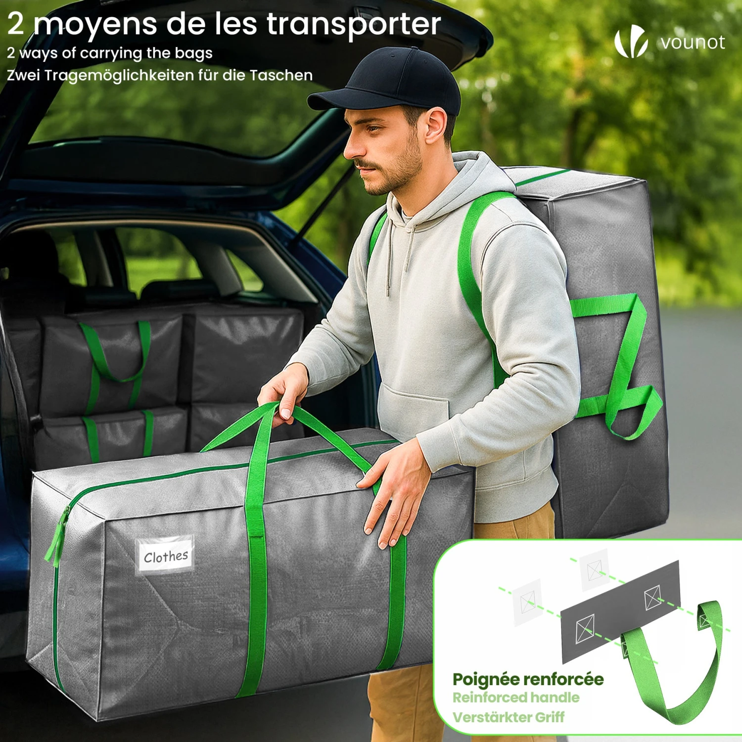 Oubliez les cartons encombrants ! Optez pour nos sacs de déménagement légers, résistants et réutilisables ! Contrairement aux poignées standard, nos poignées sont entièrement intégrées, de la base jusqu’à l’ouverture. Cette répartition uniforme de la pression élimine les points de fragilité, assurant une portée lourde jusqu’à 25 kg sans déchirure. POURQUOI CHOISIR NOTRE SAC DE DÉMÉNAGEMENT RÉUTILISABLE ?