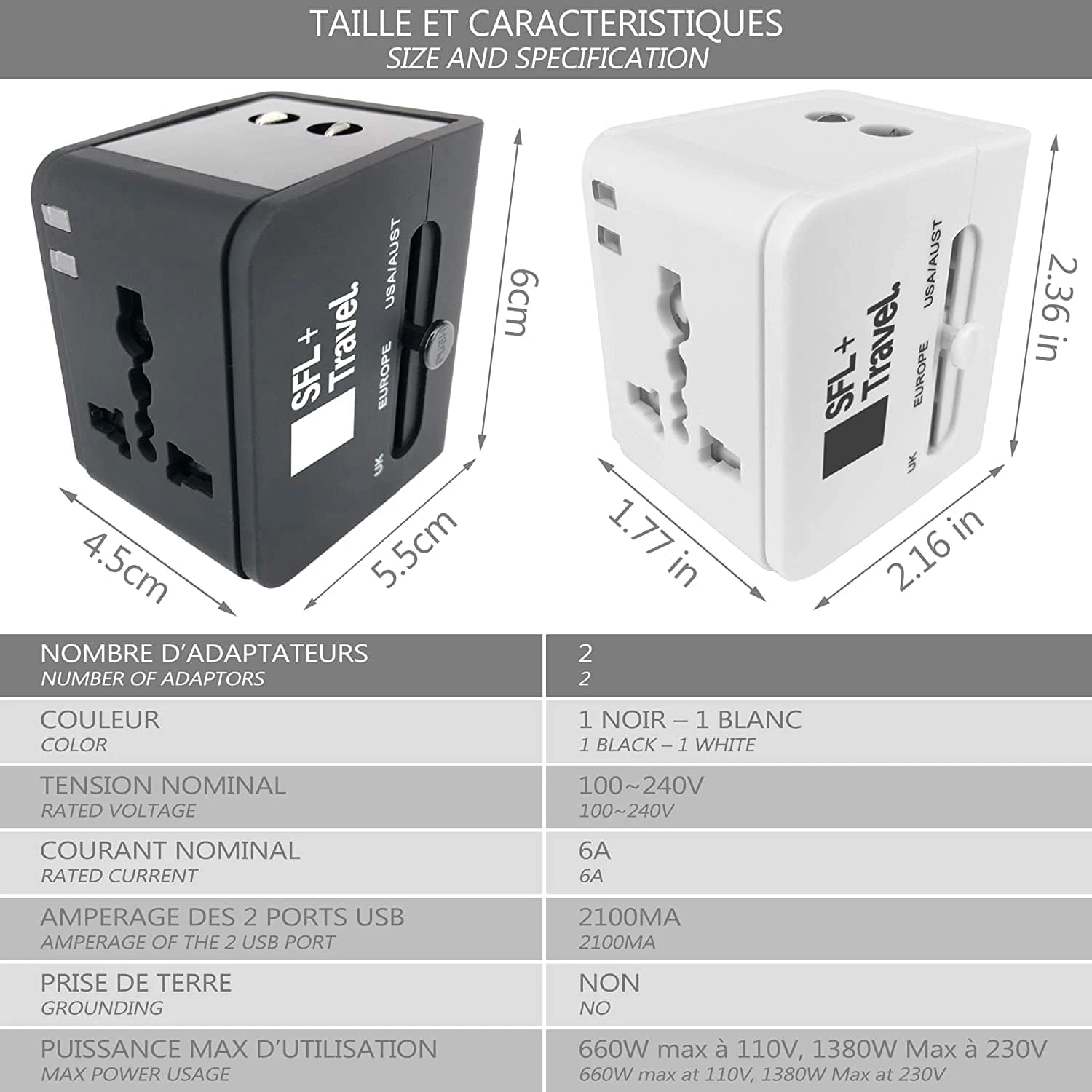 - Ce lot de 2 adaptateurs sont compatibles dans plus de 150 pays. (UK, USA, EU, Japon, etc)