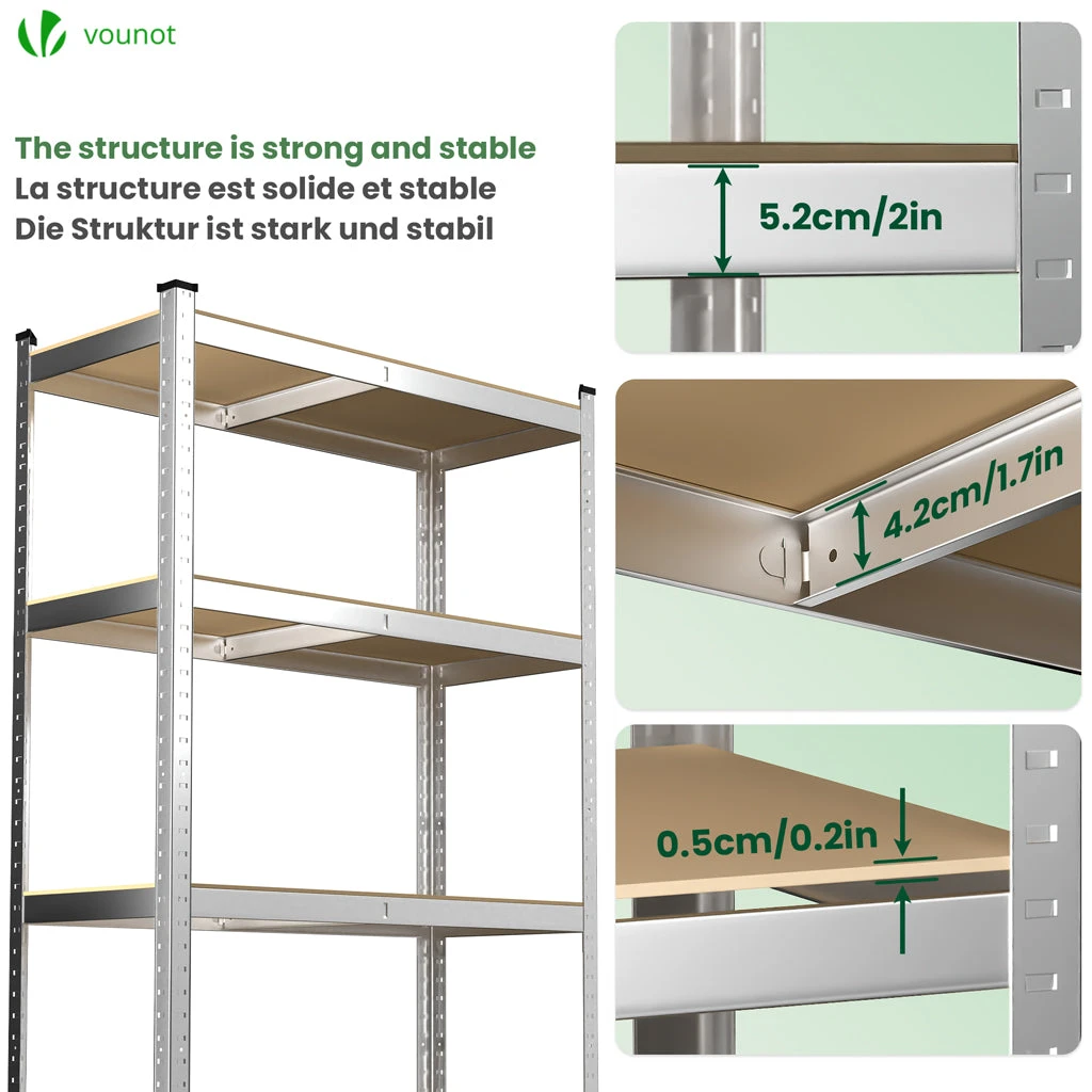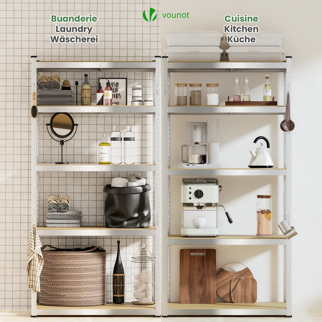 | Lot de 2 étagères de rangement charge lourde | Lot de 2 étagères de rangement renforcées charge extra lourde | Lot de 2 étagères de rangement avec crochets charge lourde |