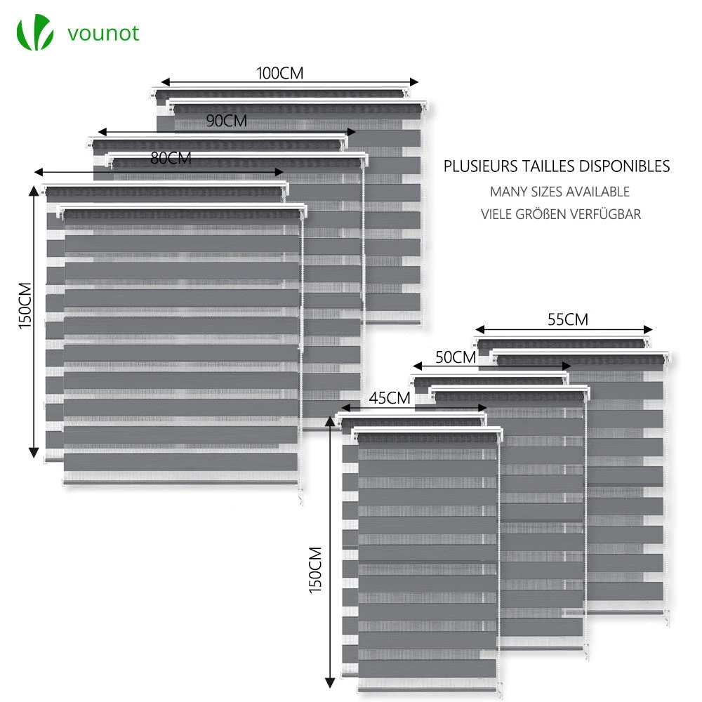 Lot De 2 Store Enrouleur Jour Nuit Double 100x150cm Gris(Lot De 2 Store Enrouleur Jour Nuit Double 100x150cm Gris)