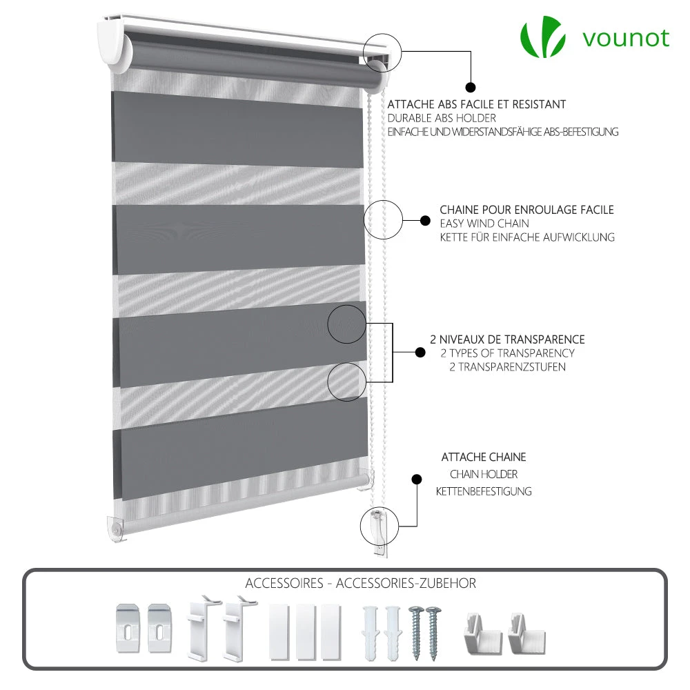 Notre store est fabriqué en polyester résistant à l’humidité, aux moisissures et aux rayons du soleil, ce qui favorise une durée de vie prolongée.