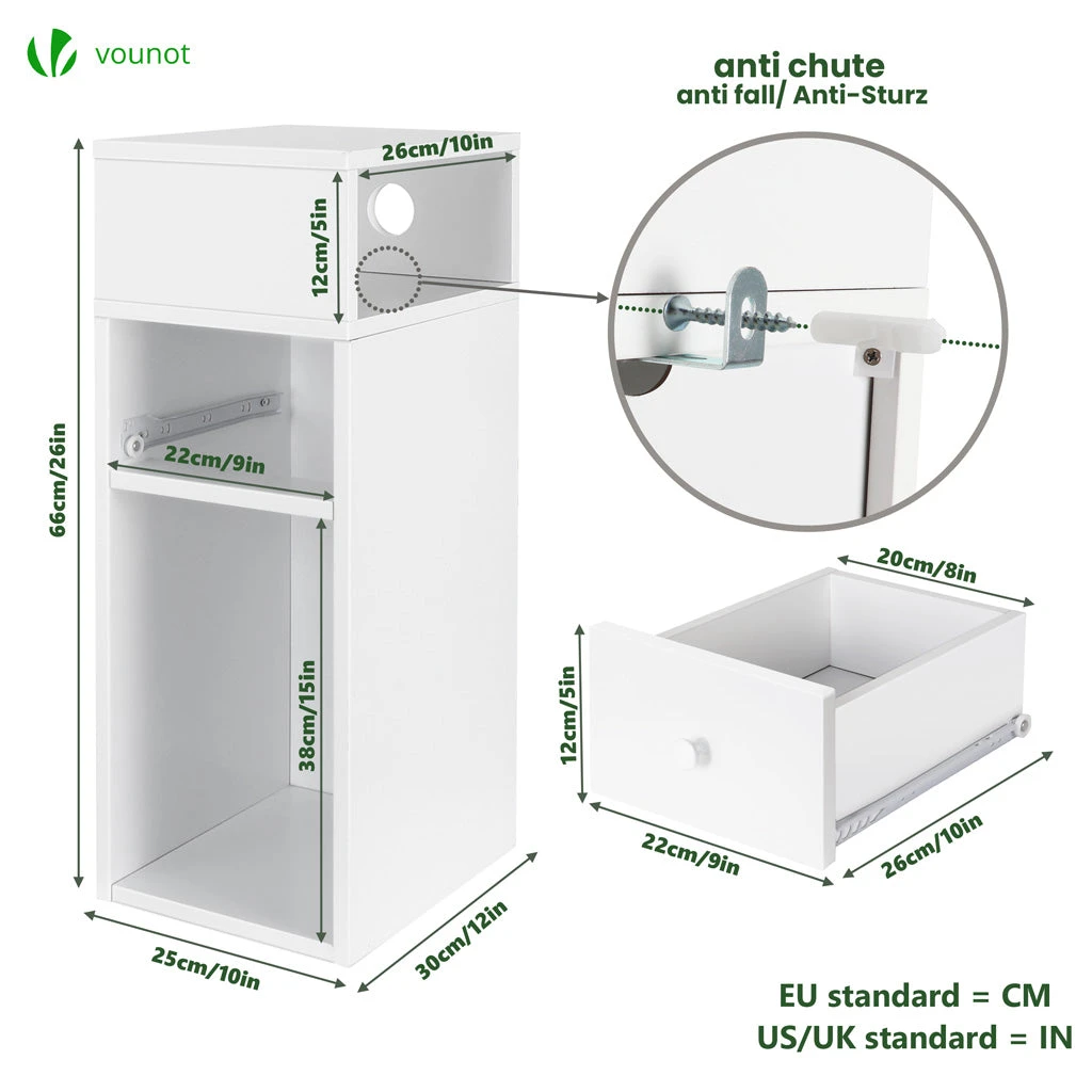 Lot De 2 Table De Chevet D’appoint Avec Tiroir Et Compartiment 25x30x66cm Blanc(Lot De 2 Table De Chevet D Appoint Avec Tiroir Et Compartiment 25x30x66cm Blanc)