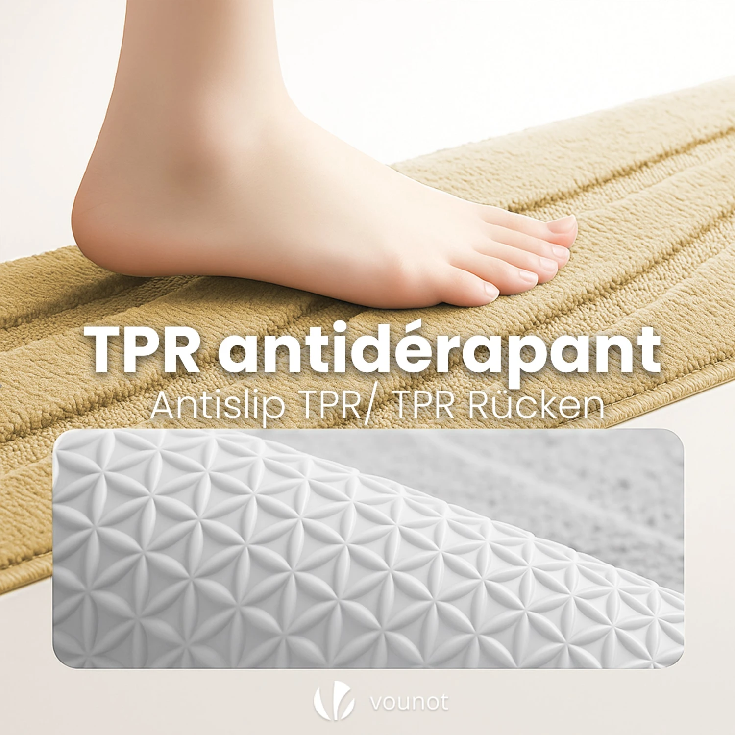 Lot De 2 Tapis De Bain Antidérapant Microfibre Motif Ondulé 40x60cm Beige(Lot De 2 Tapis De Bain Antiderapant Microfibre Motif Ondule 40x60cm Beige)