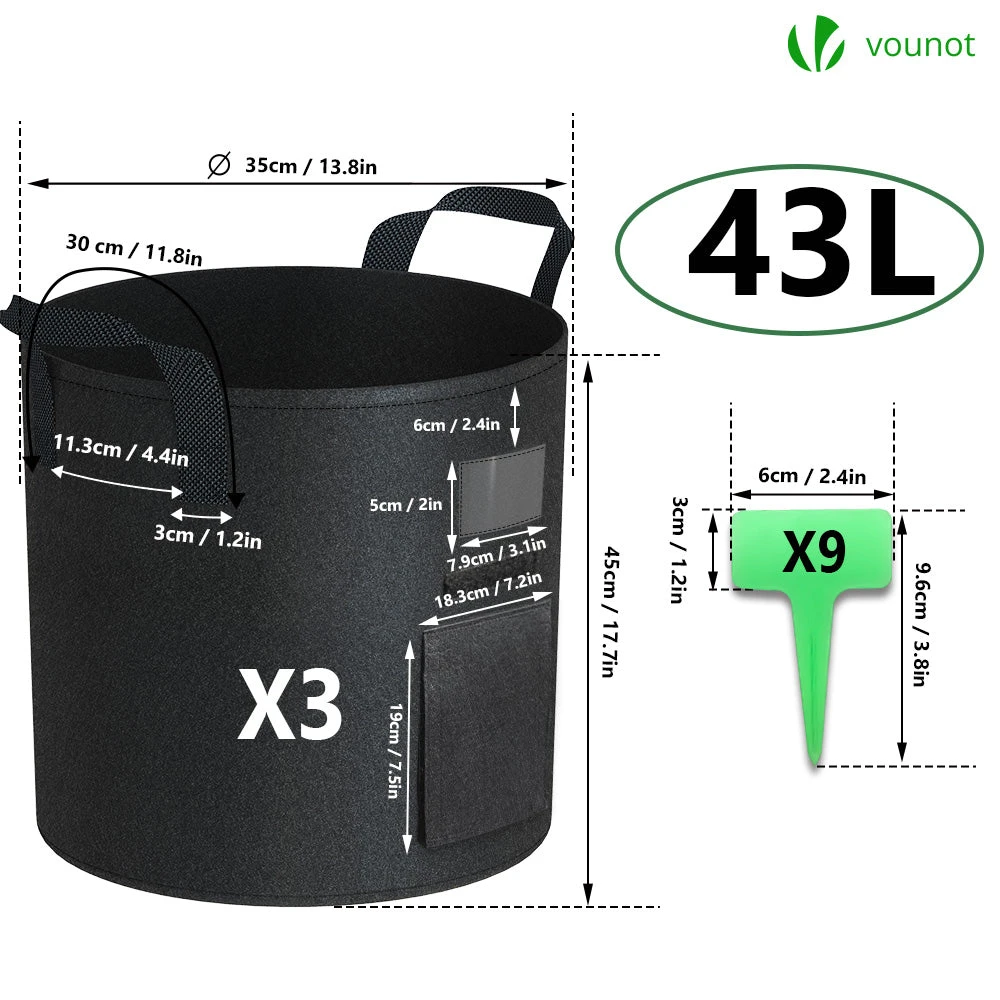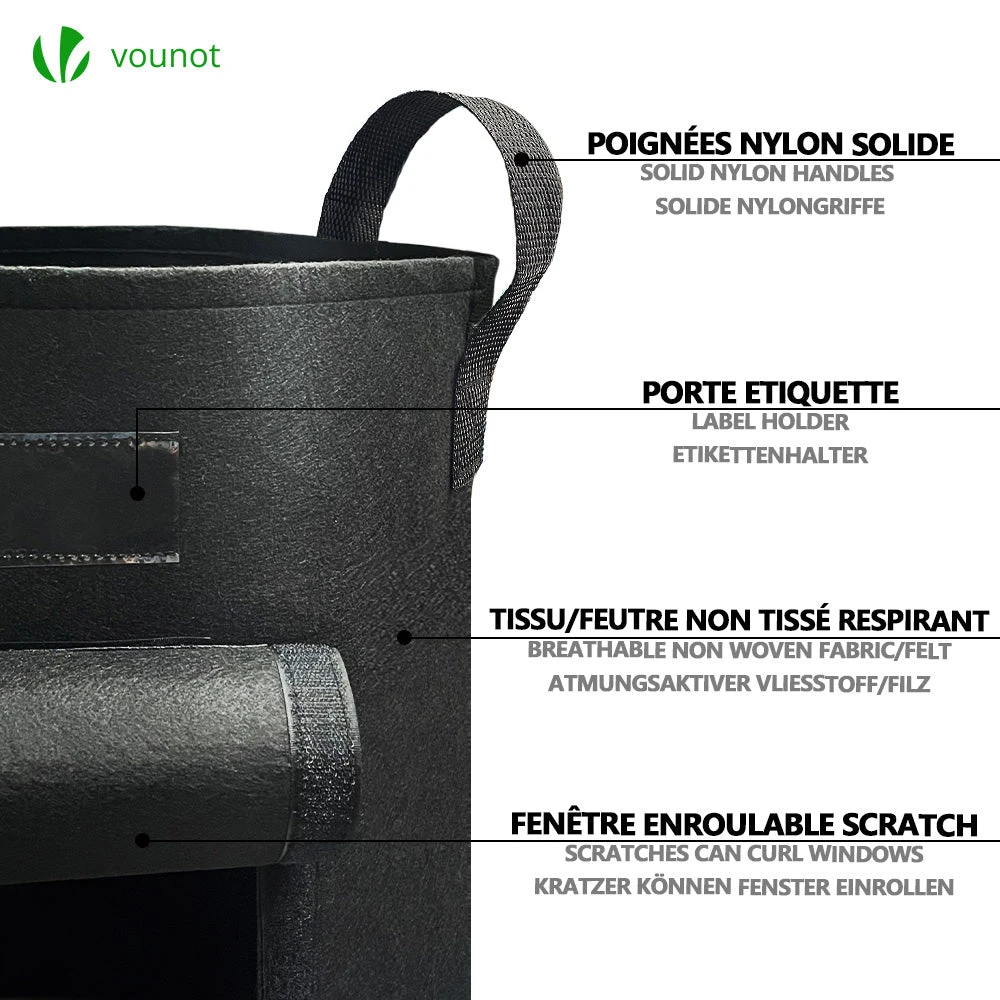 | Lot de 5 sacs de plantation non tisse 20L | Lot 5 sacs de plantation non tisse 30L | Lot 3 sacs de plantation non tisse 43L |