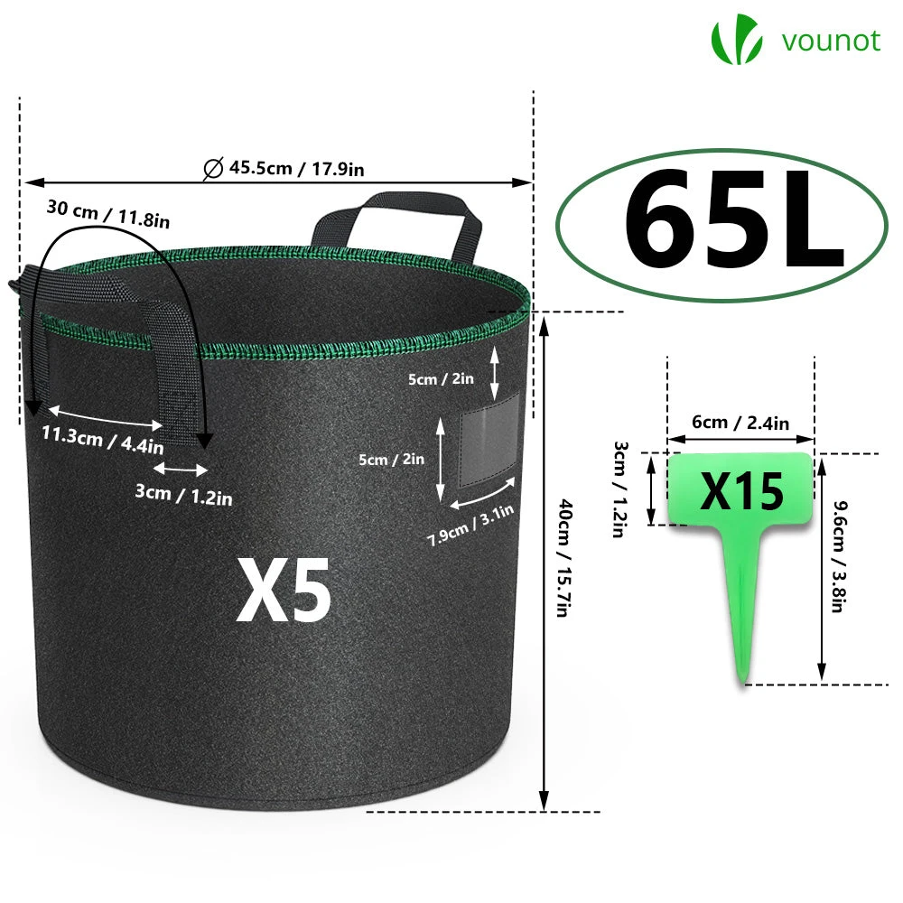 Lot De 5 Sacs De Plantation Non Tisse 65L Avec Poignee Noir(Lot De 5 Sacs De Plantation Non Tisse 65l Avec Poignee Noir)