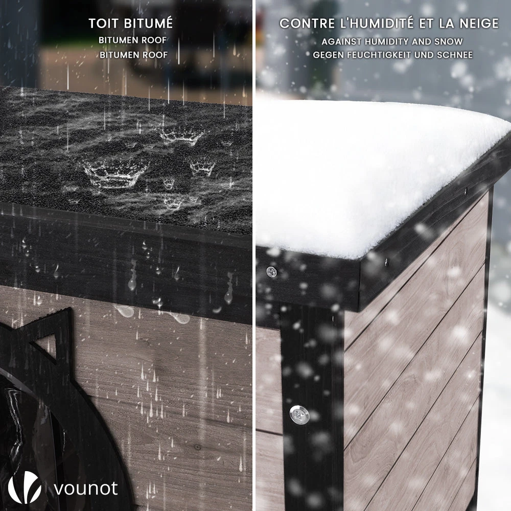 Maison pour Chat en Bois Résistante aux Intempéries et aux Rayons UV Conçue en bois durable, notre maison pour chat offre une protection fiable contre la pluie et les rayons UV, garantissant ainsi une longévité exceptionnelle. Résistante aux rayures et aux taches, elle assure à votre félin un abri sécurisé et durable. CARACTÉRISTIQUE • Dimension : L.57xl.45xH.43 cm S